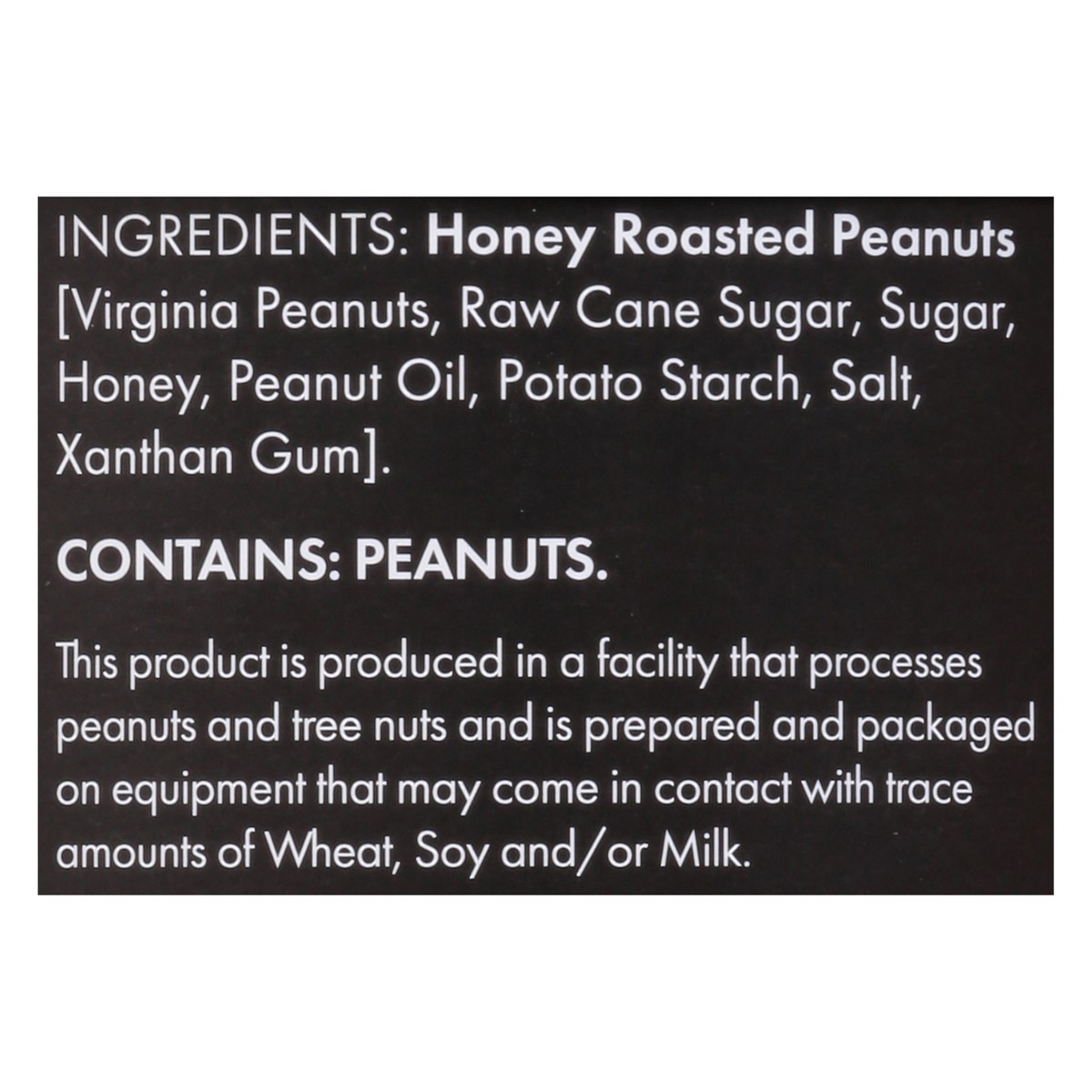 Honey Roasted Peanuts [Virginia Peanuts, Raw Cane Sugar, Sugar Honey, Peanut Oil, Potato Starch, Salt Xanthan Gum].