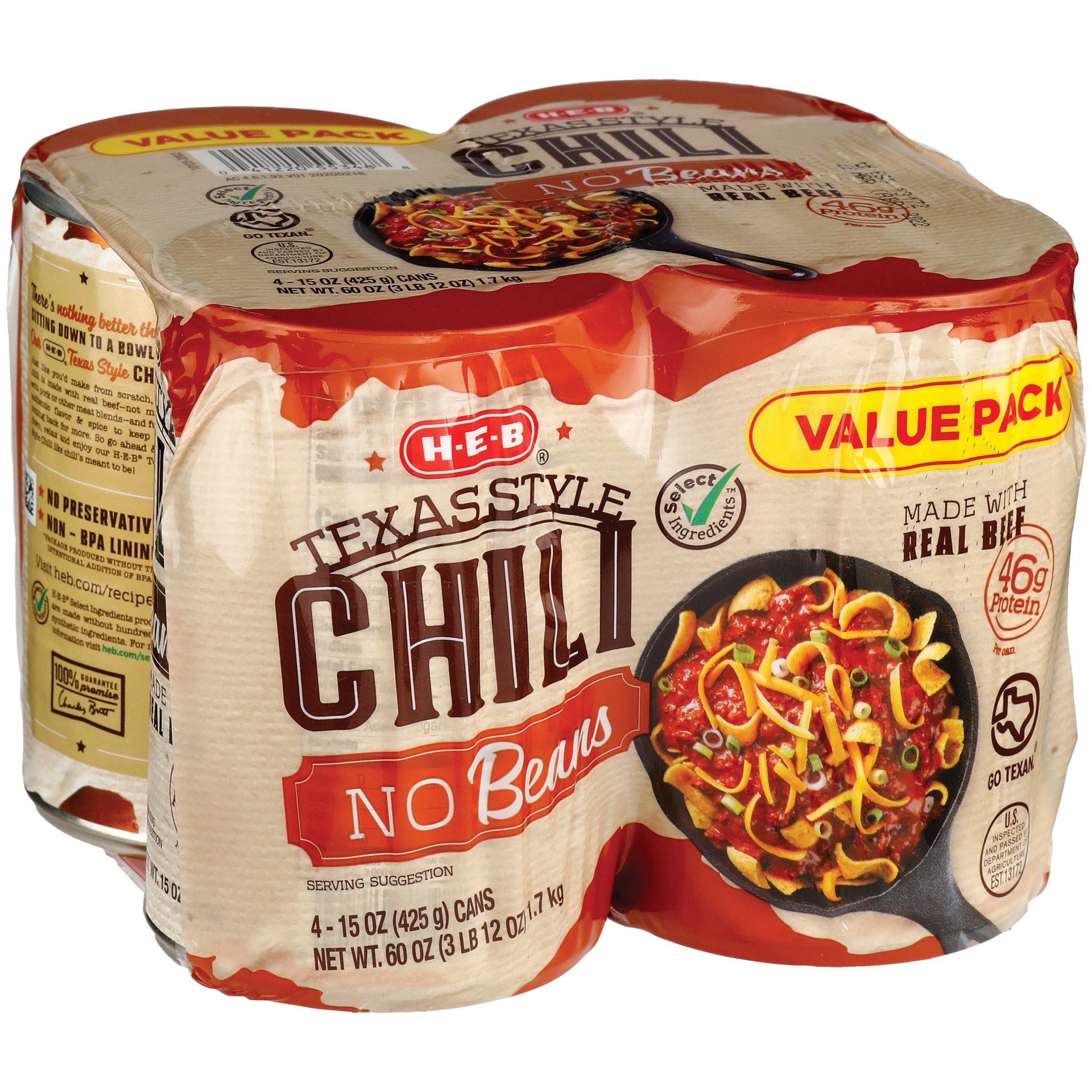 H-E-B Texas Style Chili - No Beans - Value Pack
