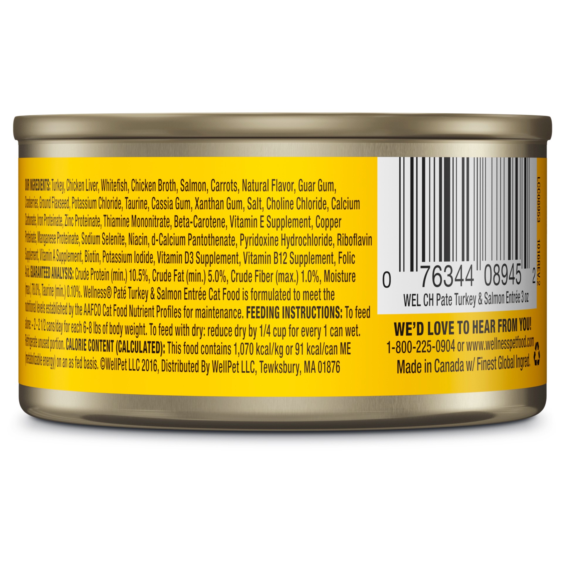 Wellness Complete Health Cat Food Grain Free Pate Turkey & Salmon Entree Can - 3 oz