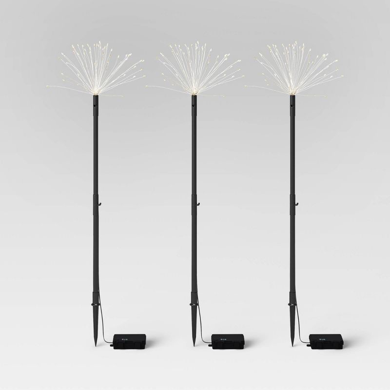 3pk Starburst Dandelion Sprig Battery LED Outdoor Light Stakes Black/White - Threshold™