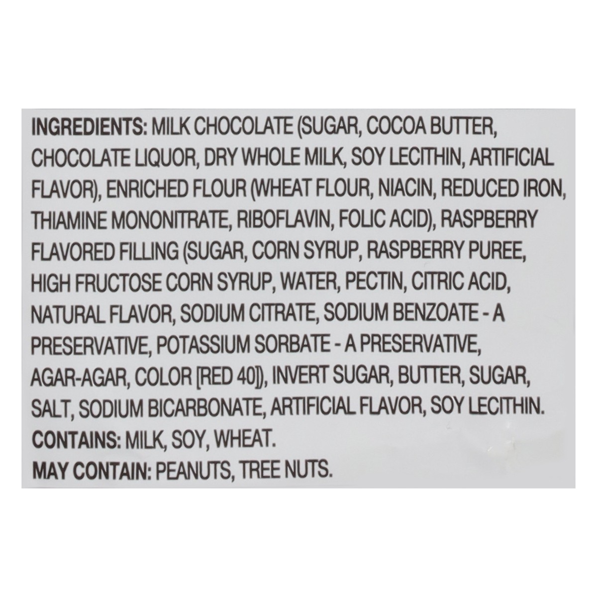 Milk Chocolate (Sugar, Cocoa Butter, Chocolate Liquor, Dry Whole Milk, Soy Lecithin, Artificial Flavor), Enriched Flour (Wheat Flour, Niacin, Reduced Iron, Thiamine Mononitrate, Riboflavin, Folic Acid…