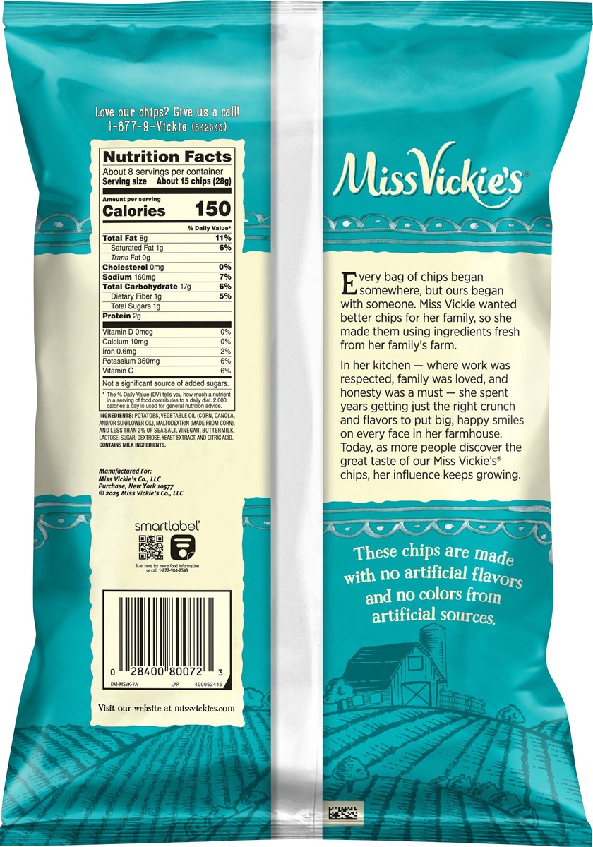Potatoes, Vegetable Oil (Corn, Canola, and/or Sunflower Oil), Maltodextrin (Made from Corn), and Less than 2% of Sea Salt, Vinegar, Buttermilk, Lactose, Sugar, Dextrose, Yeast Extract, and Citric Acid…