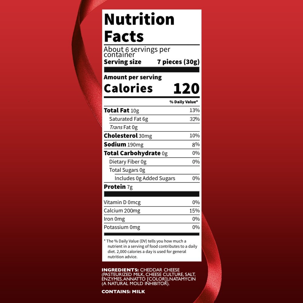Cheddar Cheese (Pasteurized Milk, Cheese Culture, Salt, Enzymes, Annatto [Color]), Natamycin (a Natural Mold Inhibitor).