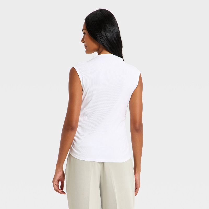 Women's Slim Fit Modern Ribbed Mock Neck Tank Top - A New Day™ Off-White XS