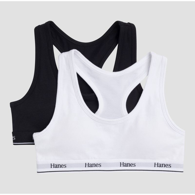 Hanes Girls' 2pk Cotton Sports Bra - Black/White XL
