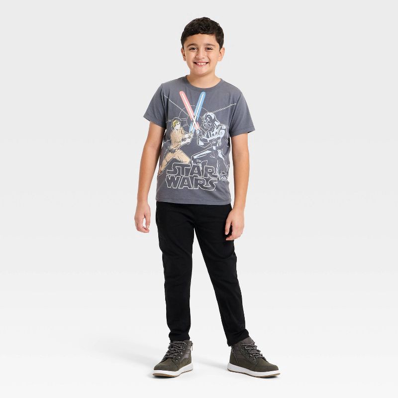 Boys' Star Wars Saber Battle Short Sleeve T-Shirt - Charcoal Gray XL