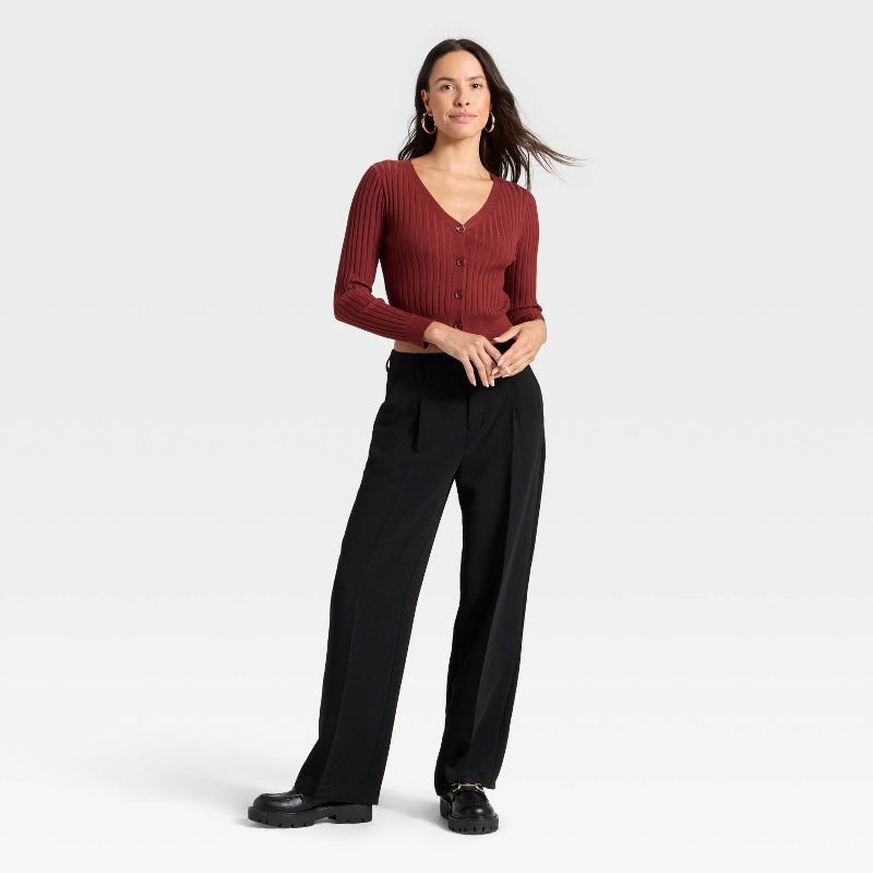 Women's Button-Front Cardigan Sweater - A New Day™ Maroon S