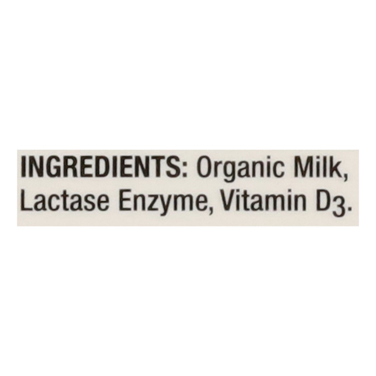 Organic Milk, Lactase Enzyme, Vitamin D3.