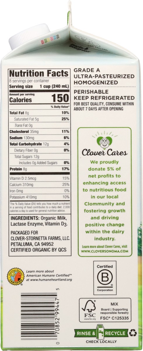 Clover Sonoma Organic Lactose Free Whole Milk 0.5 gal