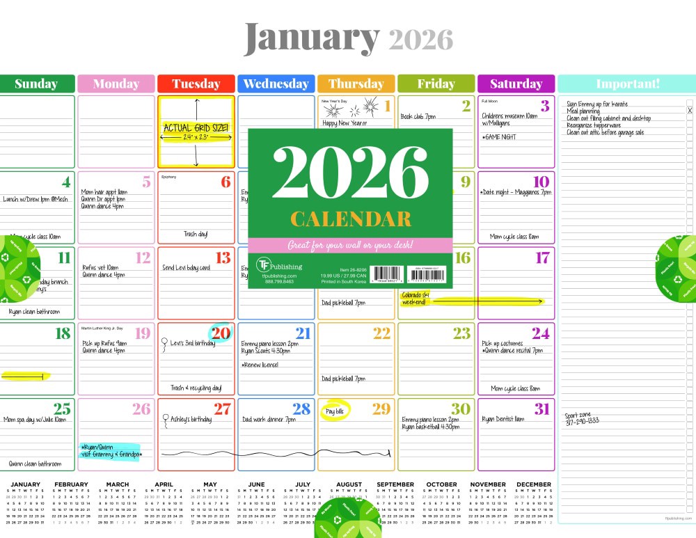 TF Publishing 2026 Rainbow Blocks Large Desk Pad Monthly Blotter Calendar, 1 ct