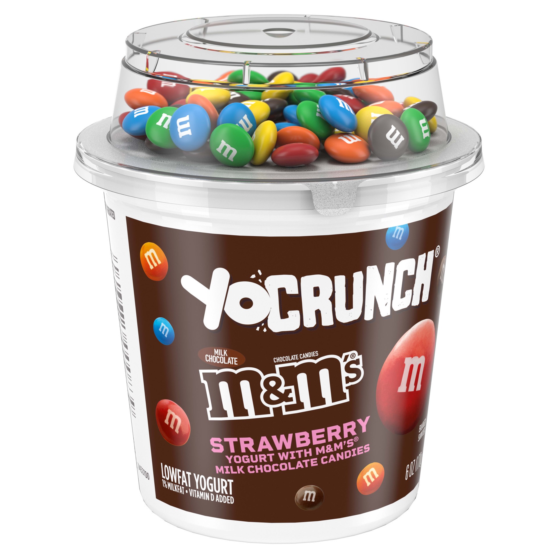 Make snack time fun with YoCrunch Lowfat Strawberry Yogurt with M&Ms. This lowfat yogurt is deliciously smooth and creamy--and best of all, it comes with M&Ms topping, so you can add a fun crunch to e…