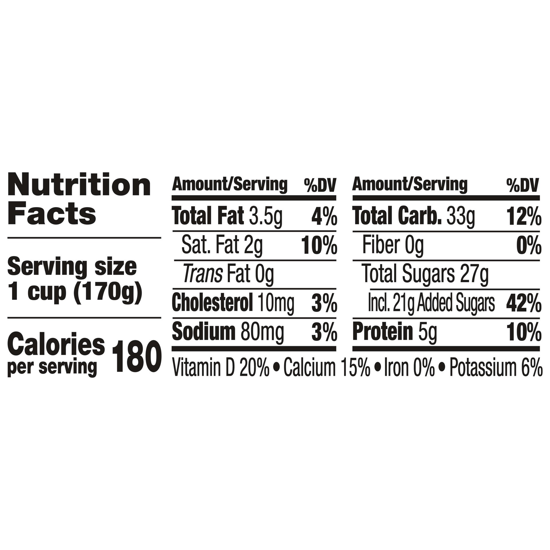 Lowfat Yogurt: Cultured Pasteurized Grade A Low Fat Milk, Water, Sugar, Modified Corn Starch, Strawberry Puree, Less than 1% Natural Flavors, Fruit Juice and Vegetable Juice (for Color), Pectin, Potas…