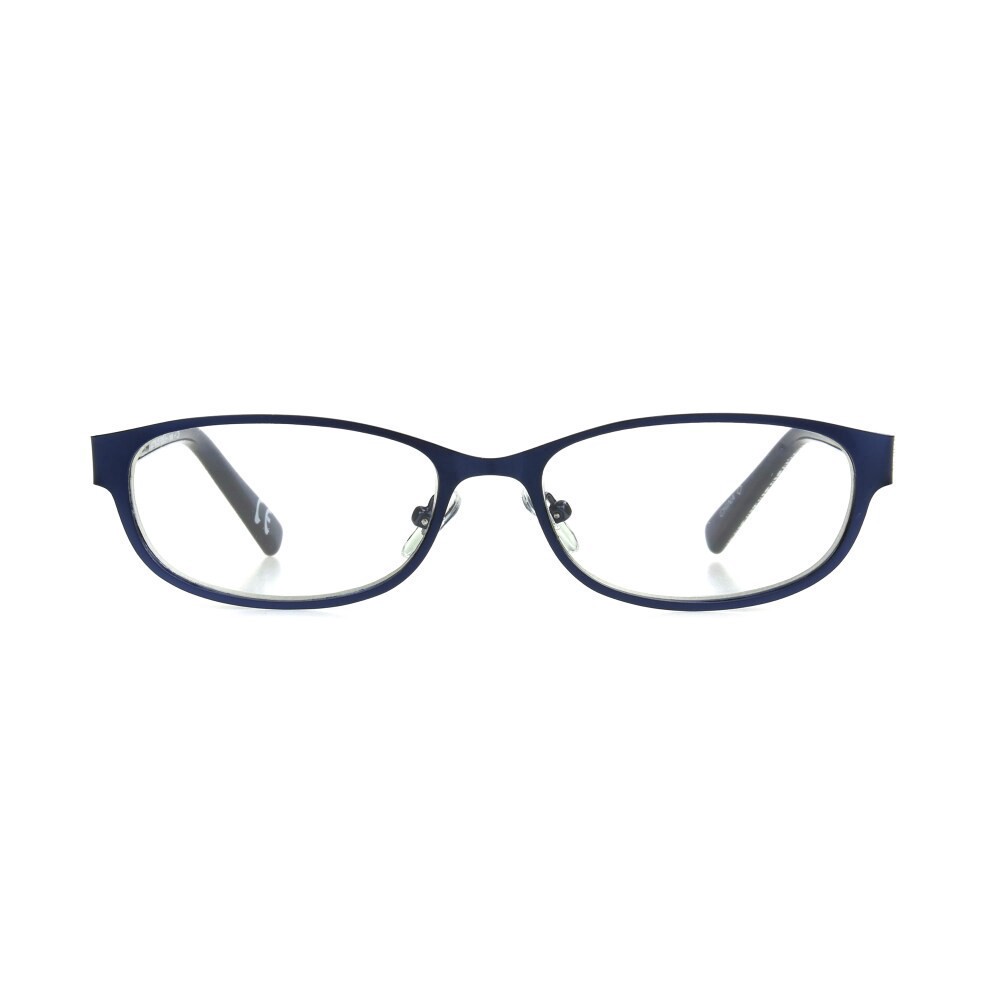 The Foster Grant® Isa Women's Reading Glasses have beautifully adorned sapphire blue temples, a textured gold band adornment, and a matte metallic frame front. Oval-shaped lenses. The lenses are fully…