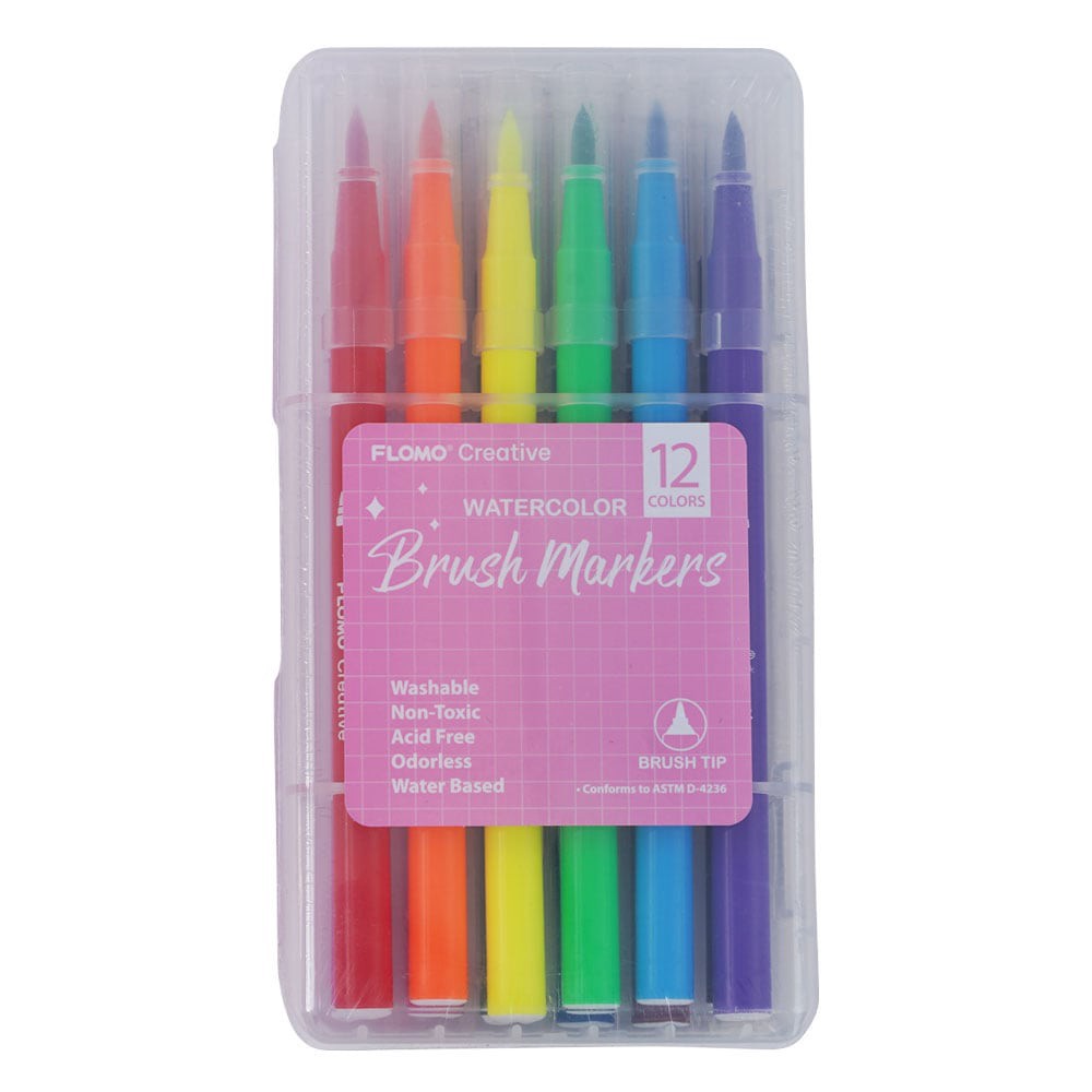 FLOMO Water Color Markers Brush Tip in Reusable Case, 12 ct
