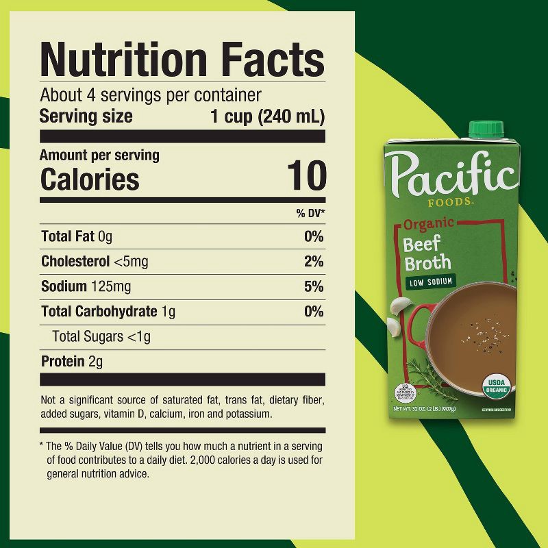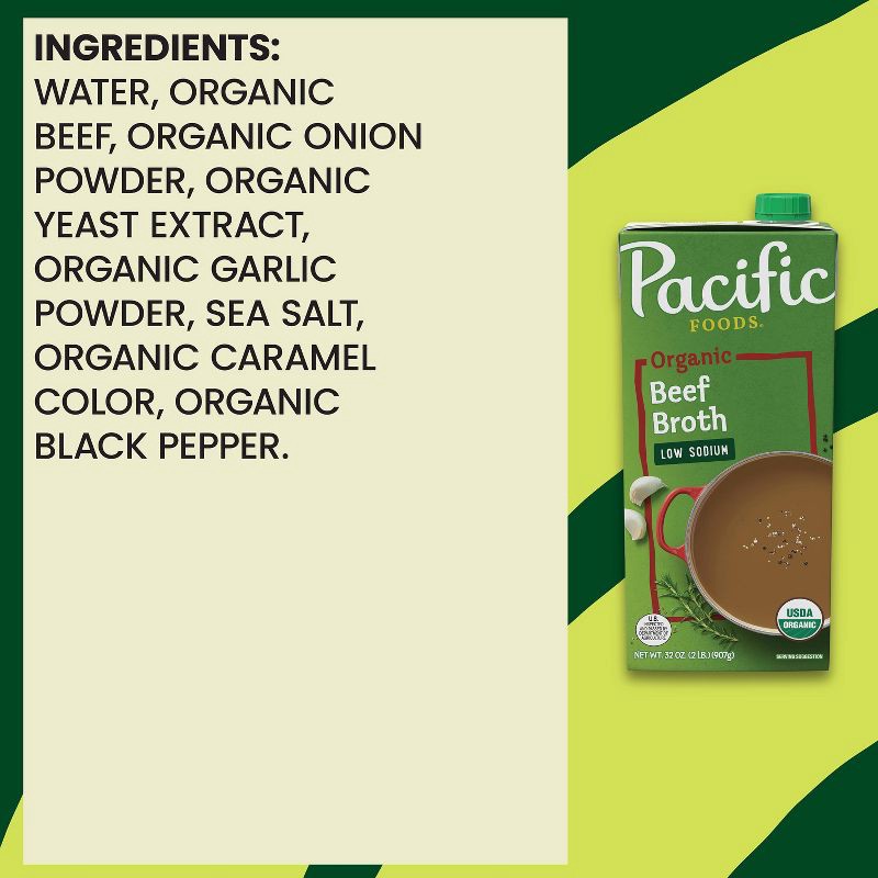 Effortlessly craft extraordinary meals with Pacific Foods Low Sodium Organic Beef Broth. We slow-simmer humanely raised organic beef with onions, garlic and a touch of sea salt for a savory broth with…
