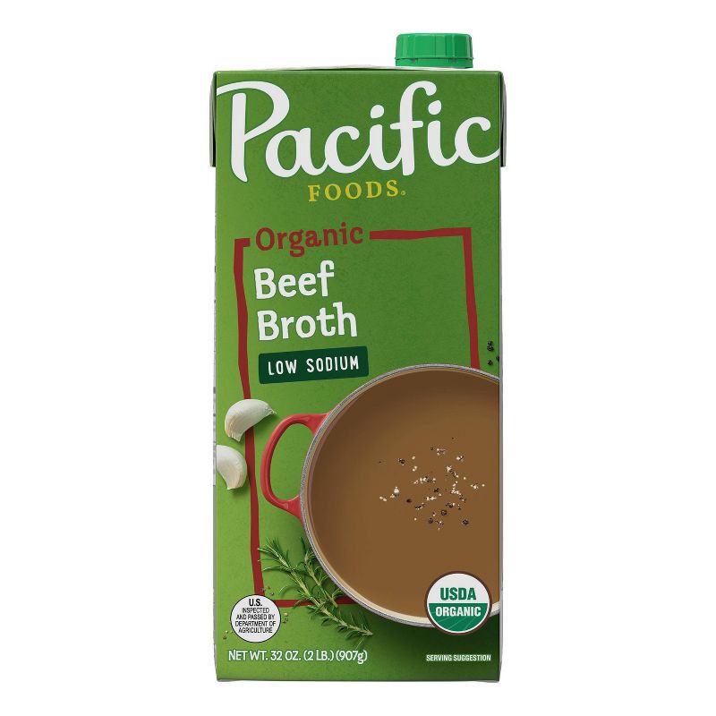 - One (1) 32 oz carton of Pacific Foods Low Sodium Organic Beef Broth