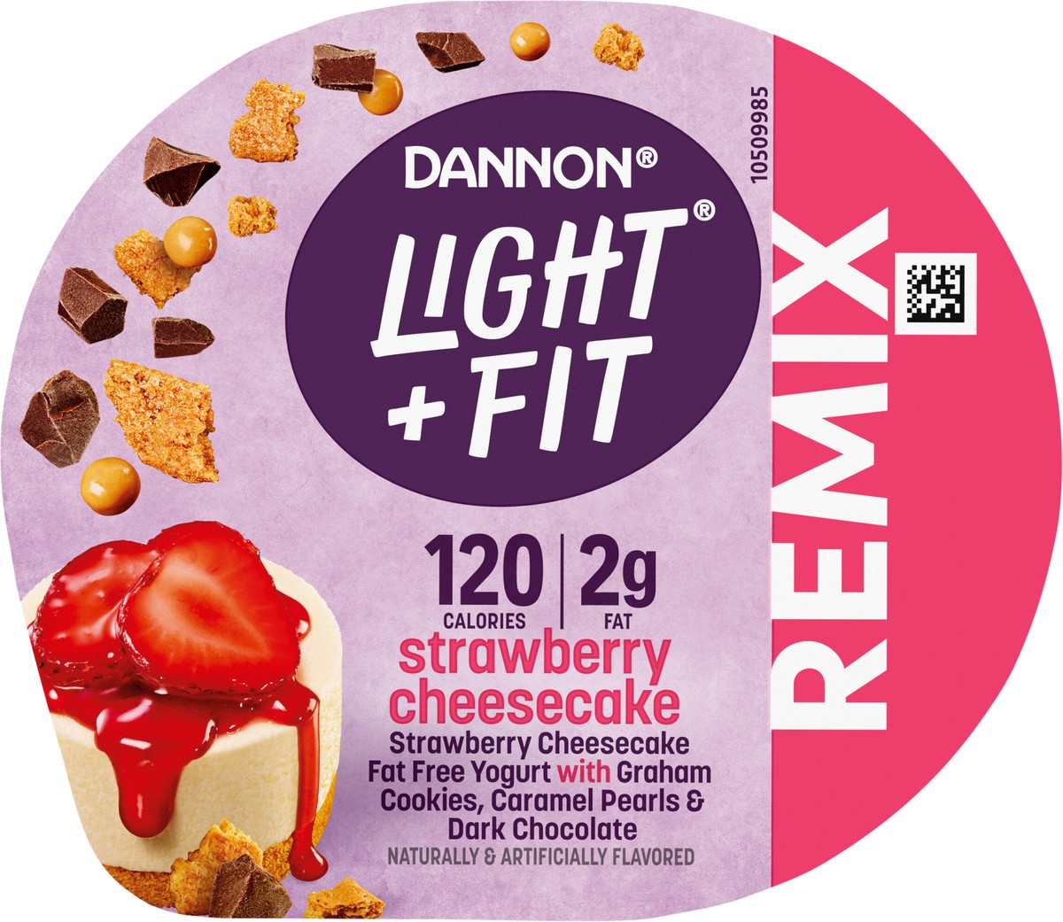 Dannon Light + Fit REMIX Strawberry Cheesecake Nonfat Greek Yogurt with Graham Cookies, Caramel Pearls and Dark Chocolate Mix-Ins, Creamy and Delicious Light Yogurt, 4.5 OZ Cups