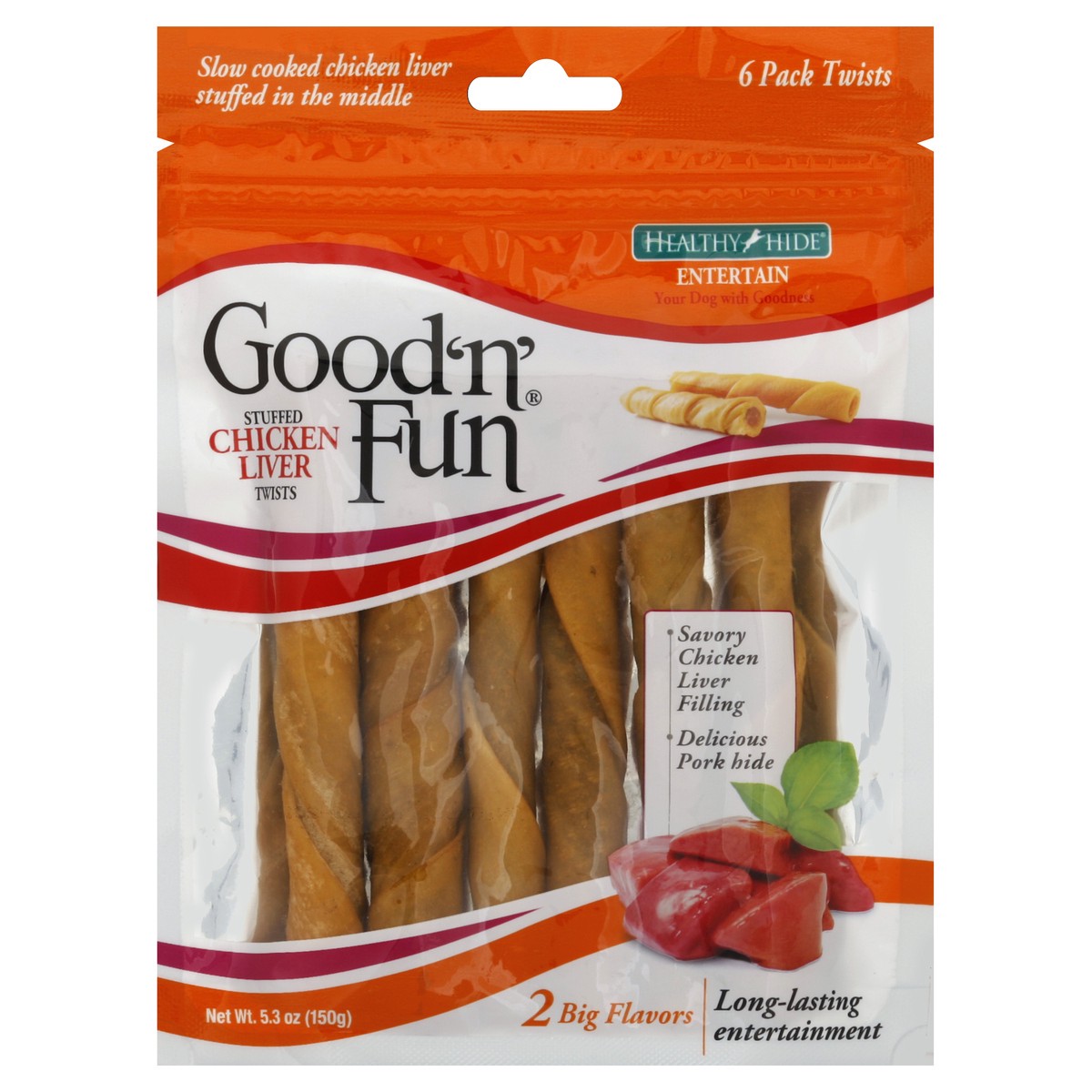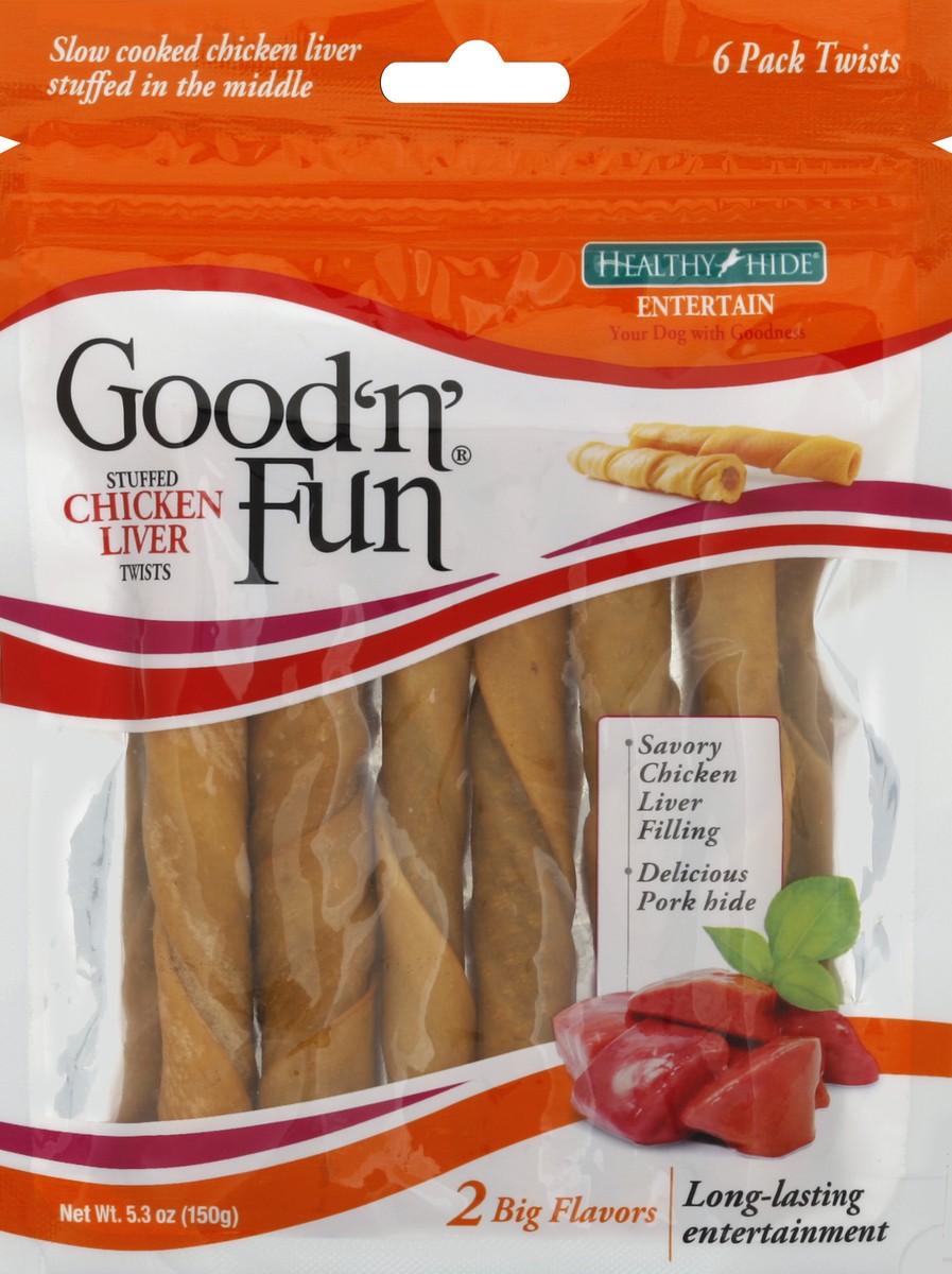 Slow cooked chicken liver stuffed in the middle. Savory chicken liver filling. Delicious pork hide. 2 big flavors. Long-lasting entertainment. Entertain your dog with goodness. Gourmet dog treats. Sav…