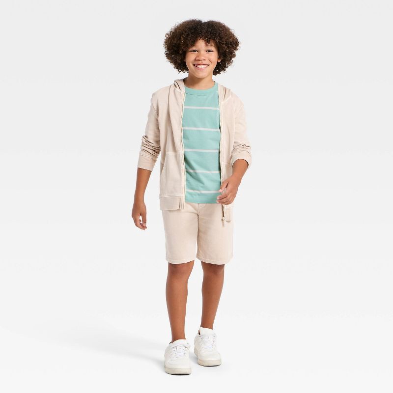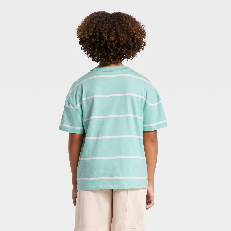 Boys' Short Sleeve Striped Oversized T-Shirt - Cat & Jack™ Green/Cream XS