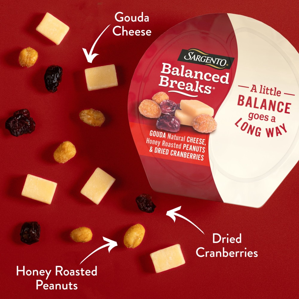 Sargento Balanced Breaks Gouda Natural Cheese, Honey Roasted Peanuts and Dried Cranberries, 3-Pack