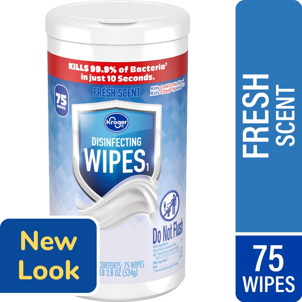 Kroger® Fresh Scent Disinfecting Wipes take care of the dirty work! Kills 99.9% of bacteriaˆ in just 10 seconds, they're ideal for fast and efficient cleaning. Their fresh scent leaves surfaces smelli…