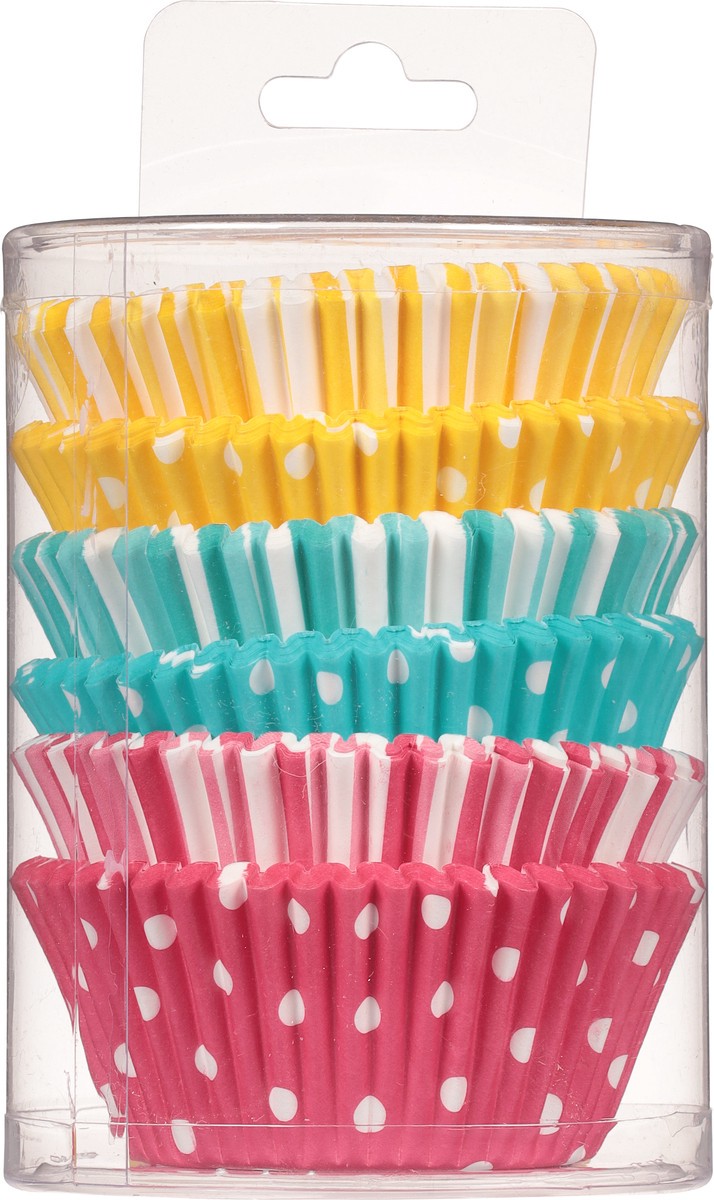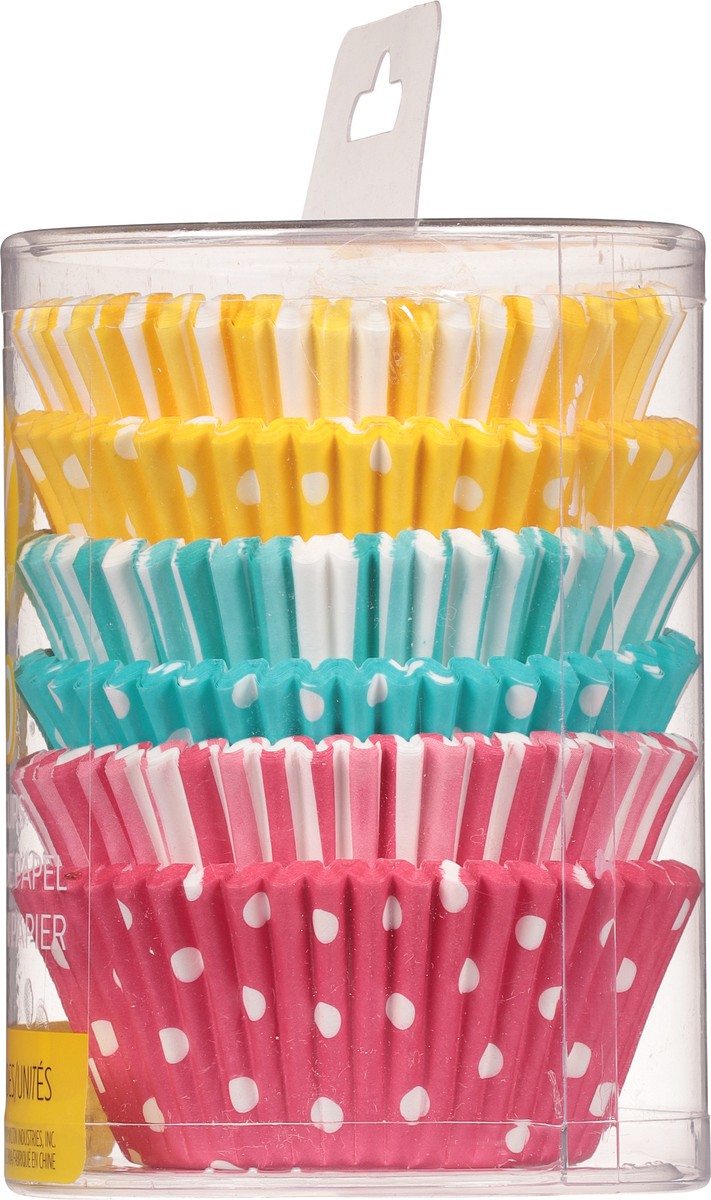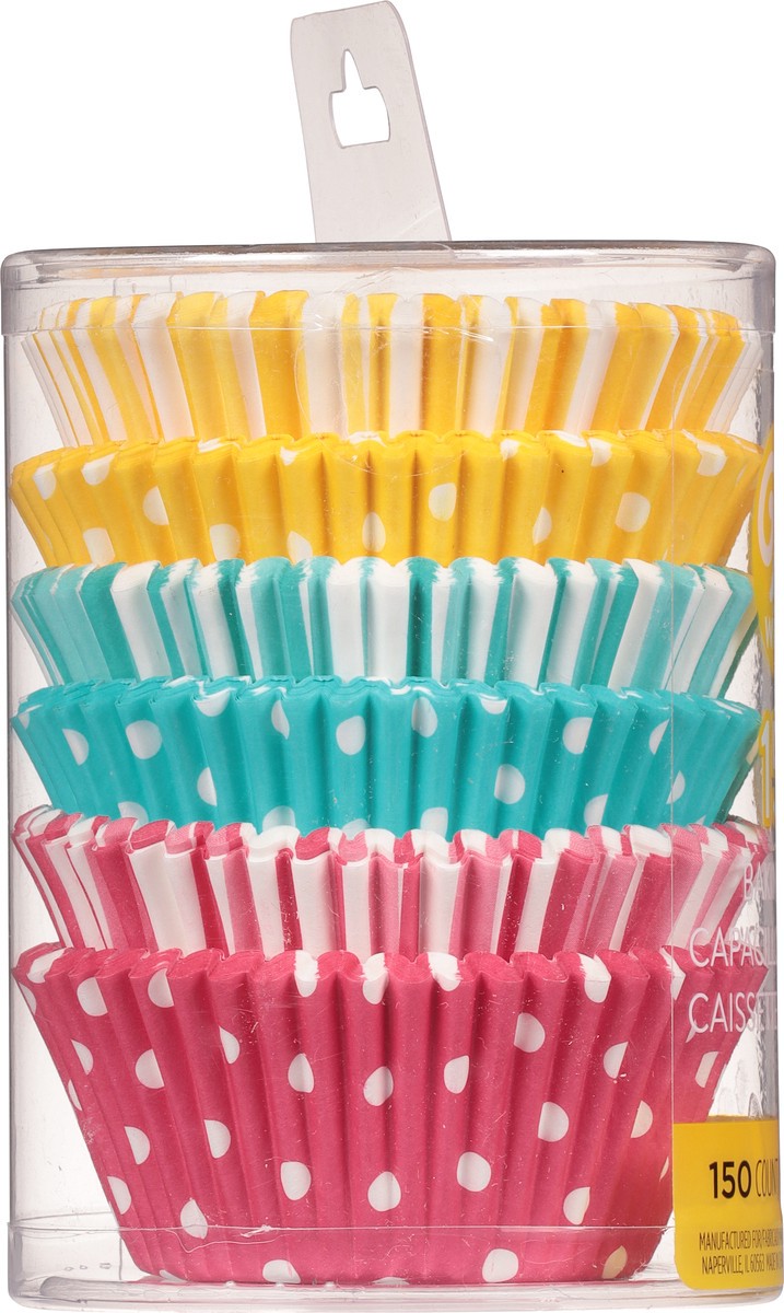 Brighten up any day with this colorful bake cup assortment. Vivid colors and unique designs provide a rainbow of options and are a fun, festive way to dress up your cupcakes and muffins. Colorful cups…