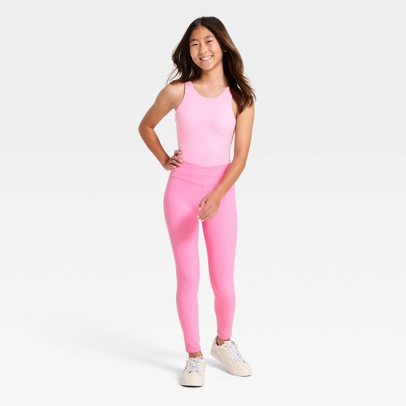 Girls' Everyday Soft Crossover Waistband Leggings - All In Motion™ Vibrant Pink XL