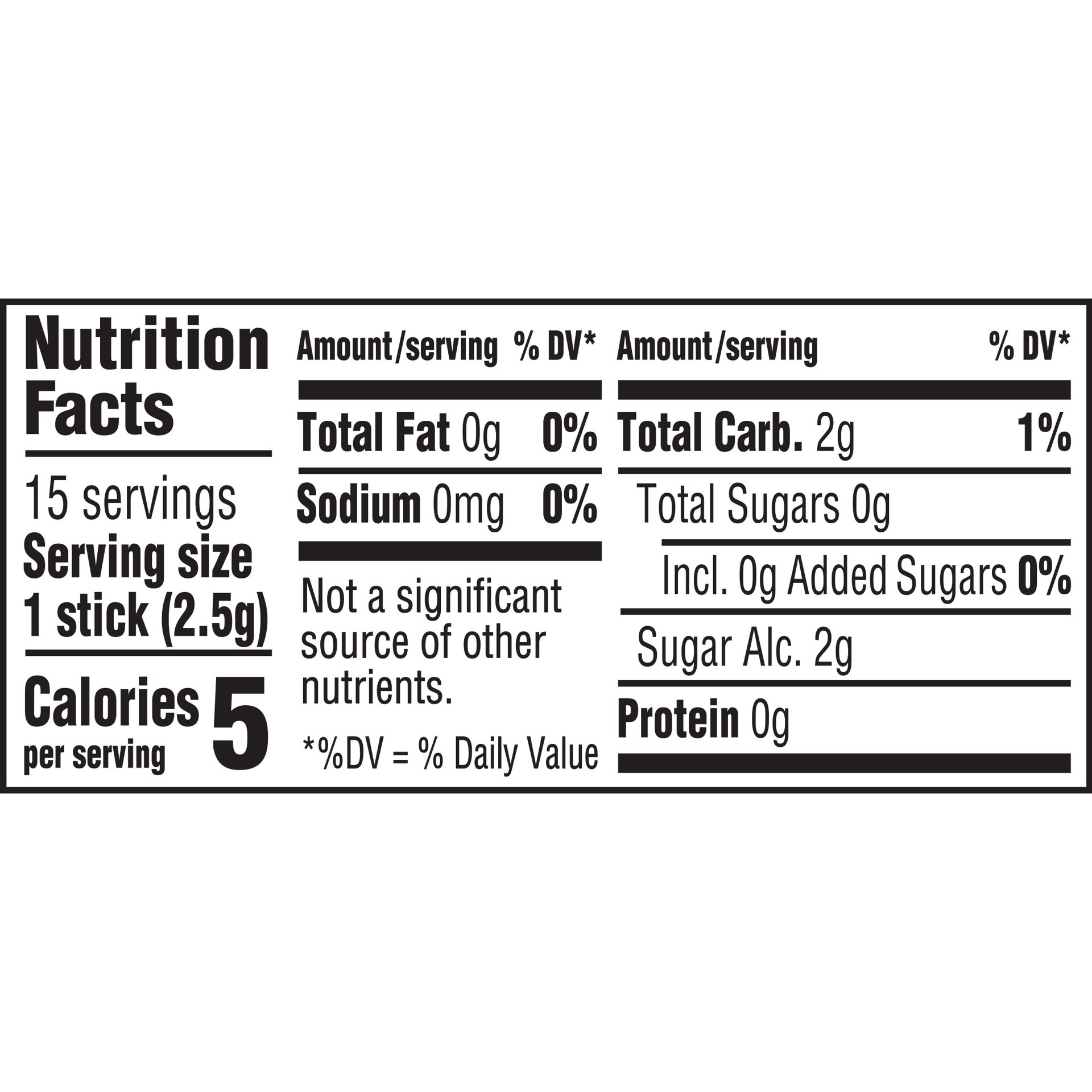 Sorbitol, Gum Base, Glycerol, Natural and Artificial Flavors; Less than 2% of: Hydrogenated Starch Hydrolysate, Aspartame, Mannitol, Acesulfame K, Soy Lecithin, Color (Blue 1 Lake), BHT (to Maintain F…