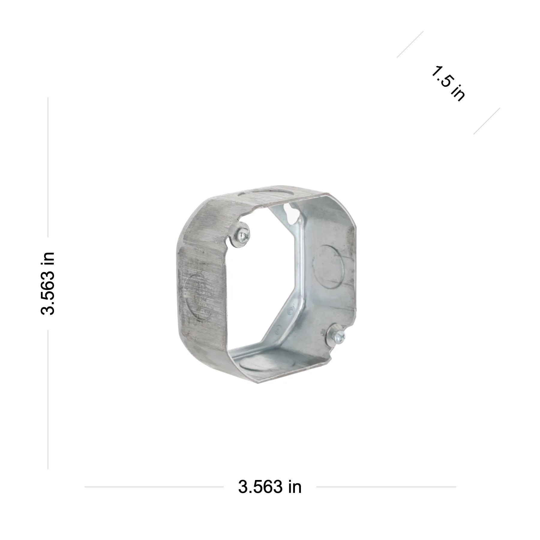 Two 1/2 in knockouts and two 3/4 in knockouts. Extends box capacity. Combination screw heads provide for faster installation. 15.5 cu in capacity. Does not support ceiling fan. Supports up to 50 lb li…