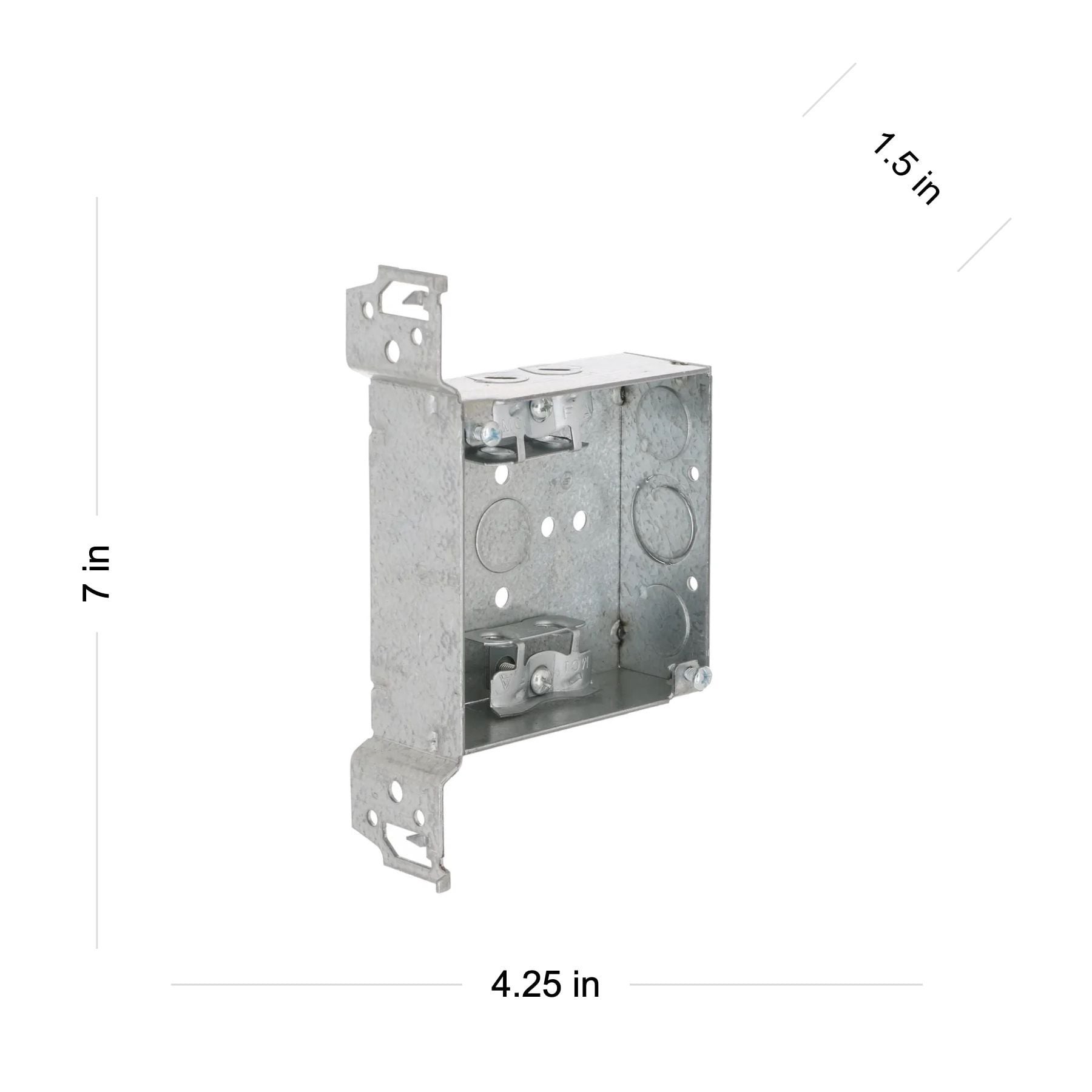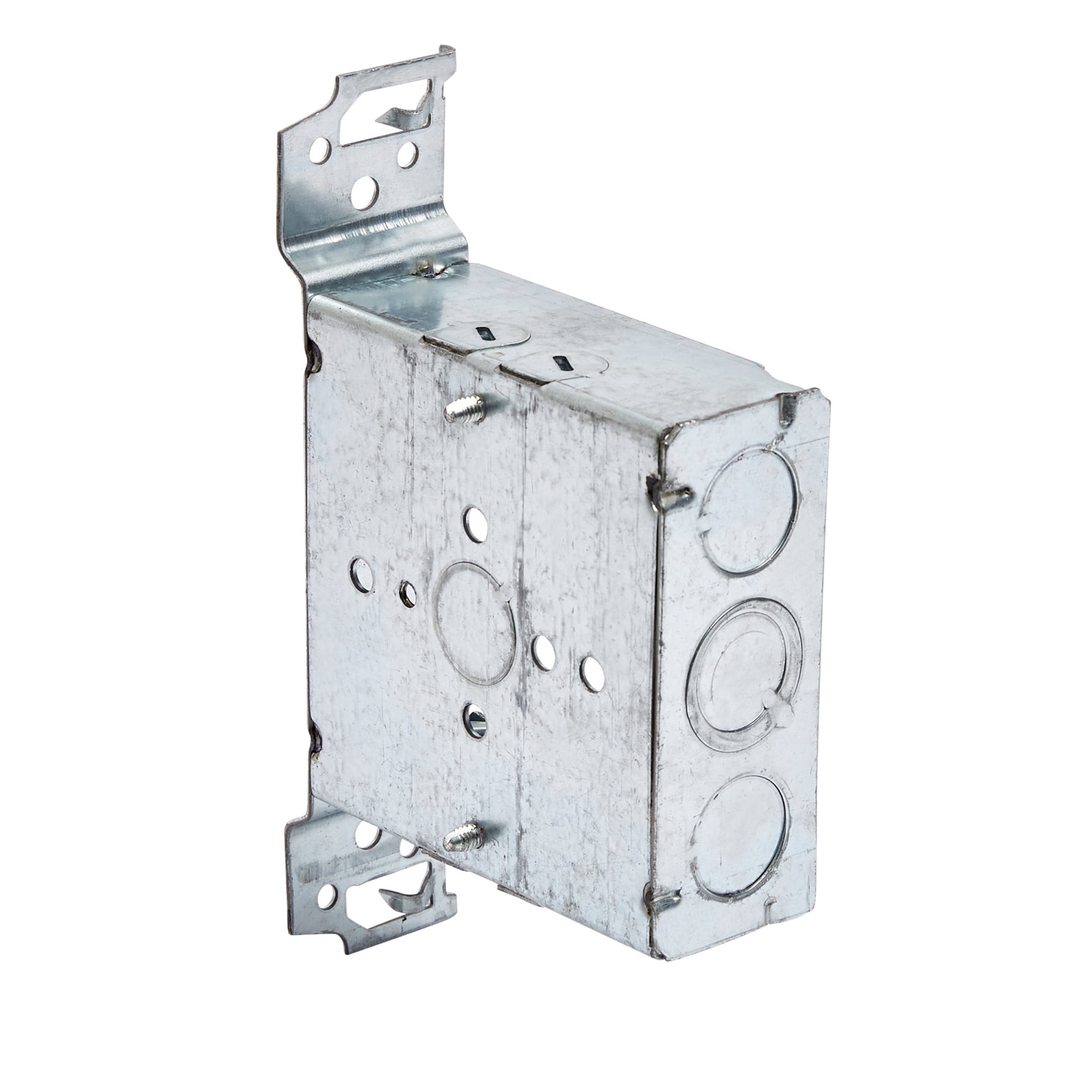Three 1/2 in knockouts and one TKO conduit knockout. 1-1/2 in depth. Welded construction. Bracket allows box to mount to flat side of metal or wood stud. Combination screw head provides faster install…