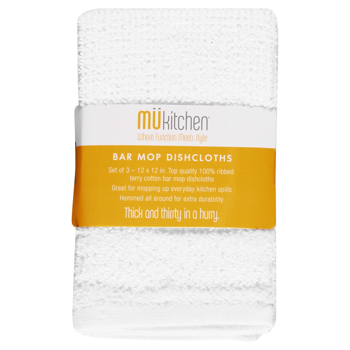 Set of 3 - 12 x 12 in. top quality 100% ribbed terry cotton bar mop dishcloths. Great for mopping up everyday kitchen spills hemmed all around for extra durability. Thick and thirsty in a hurry. www.m…