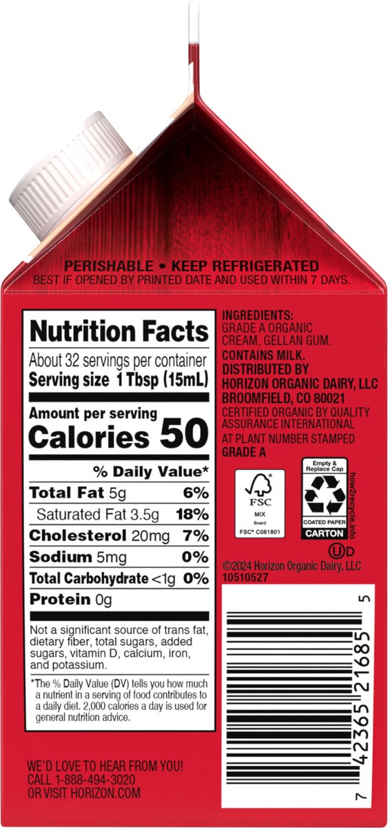 Elevate your favorite recipes with Horizon Organic Heavy Whipping Cream. Made with real cream, this heavy cream whips up into a tall, fluffy and delicious organic whipped cream topping that is perfect…