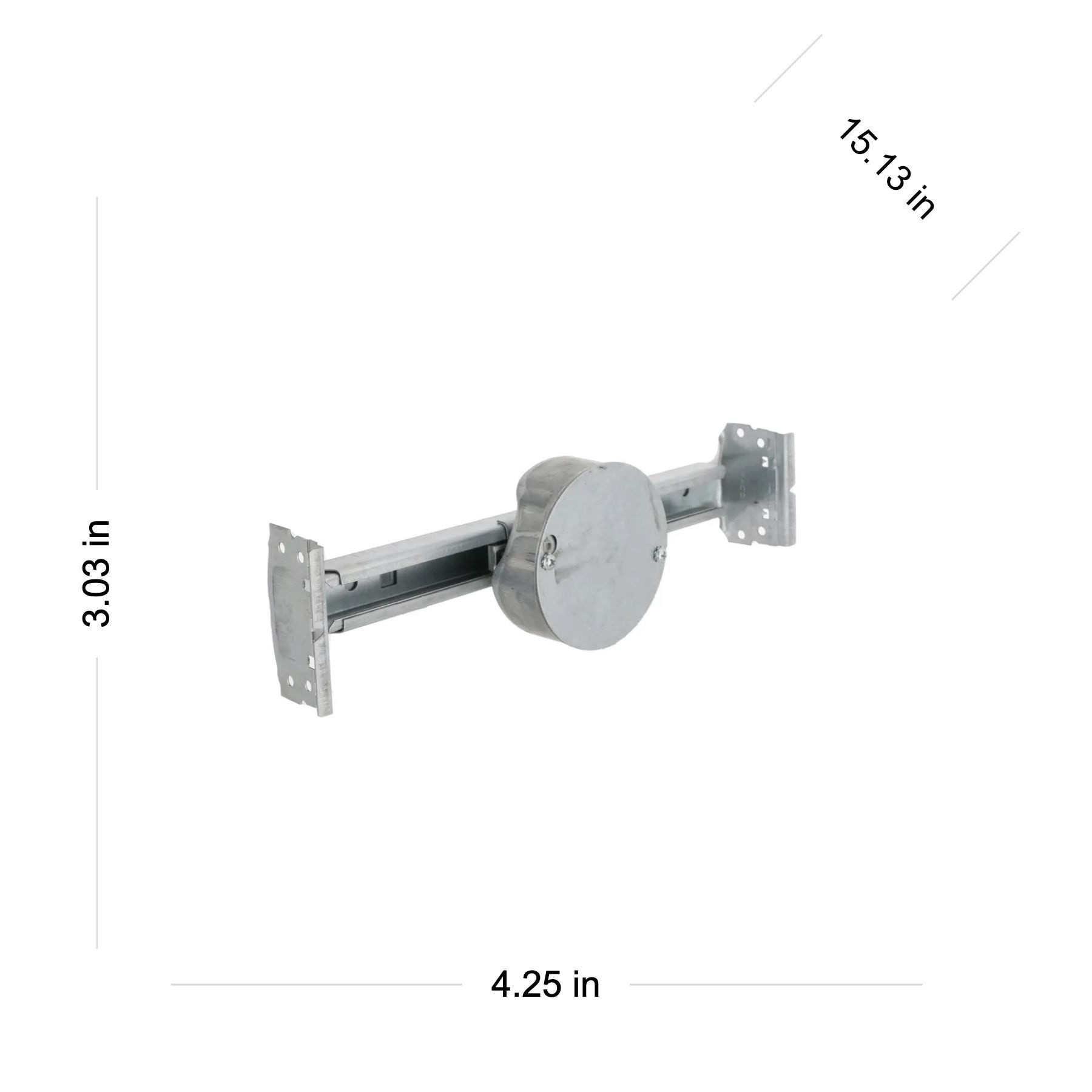 Two 1/2 in knockouts. 1-1/2 in depth. 16 in joist span, supports 70 lb ceiling fan. 24 in joist span, supports 70 lb ceiling fan. 16 in joist span, supports 210 lb light fixture. 24 in joist span, sup…