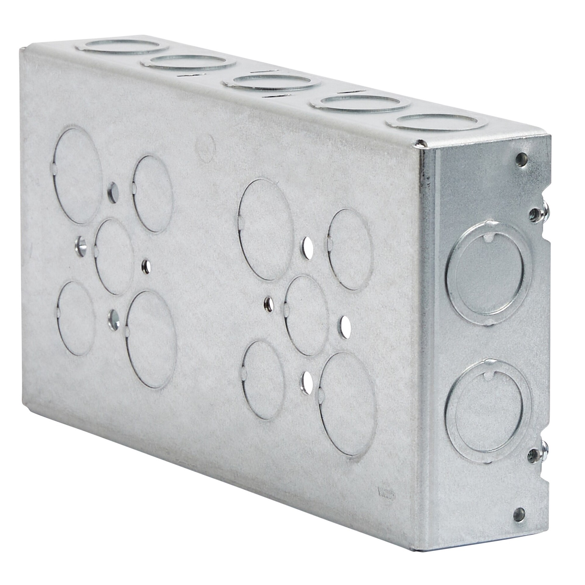 Fourteen concentric 1/2 & 3/4 in knockouts, six 1/2 knockouts and four 3/4 in knockouts. 3-gang. 1-5/8 in depth. Welded construction. 60.0 cu in capacity. Accepts either flat or 3/4 in raised device c…