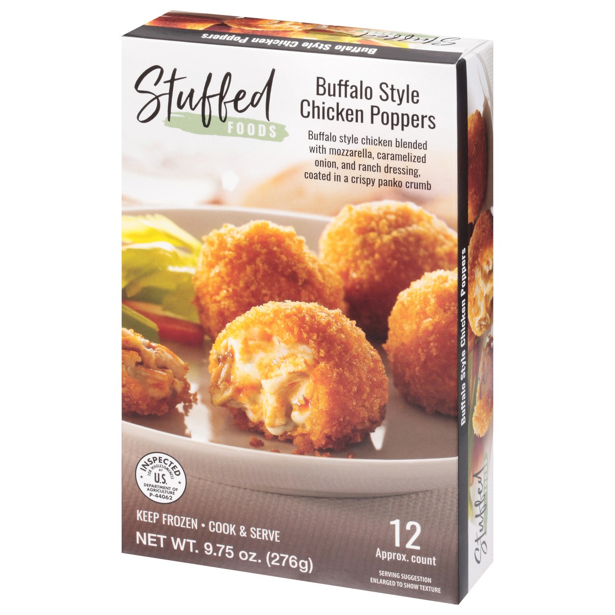 Cook & serve. 12 approx. count. Stuffed Foods Buffalo Style Chicken Poppers are a crispy, bite size version of a classic buffalo chicken dip. Marinated chicken is combined with a blend of mozzarella, …