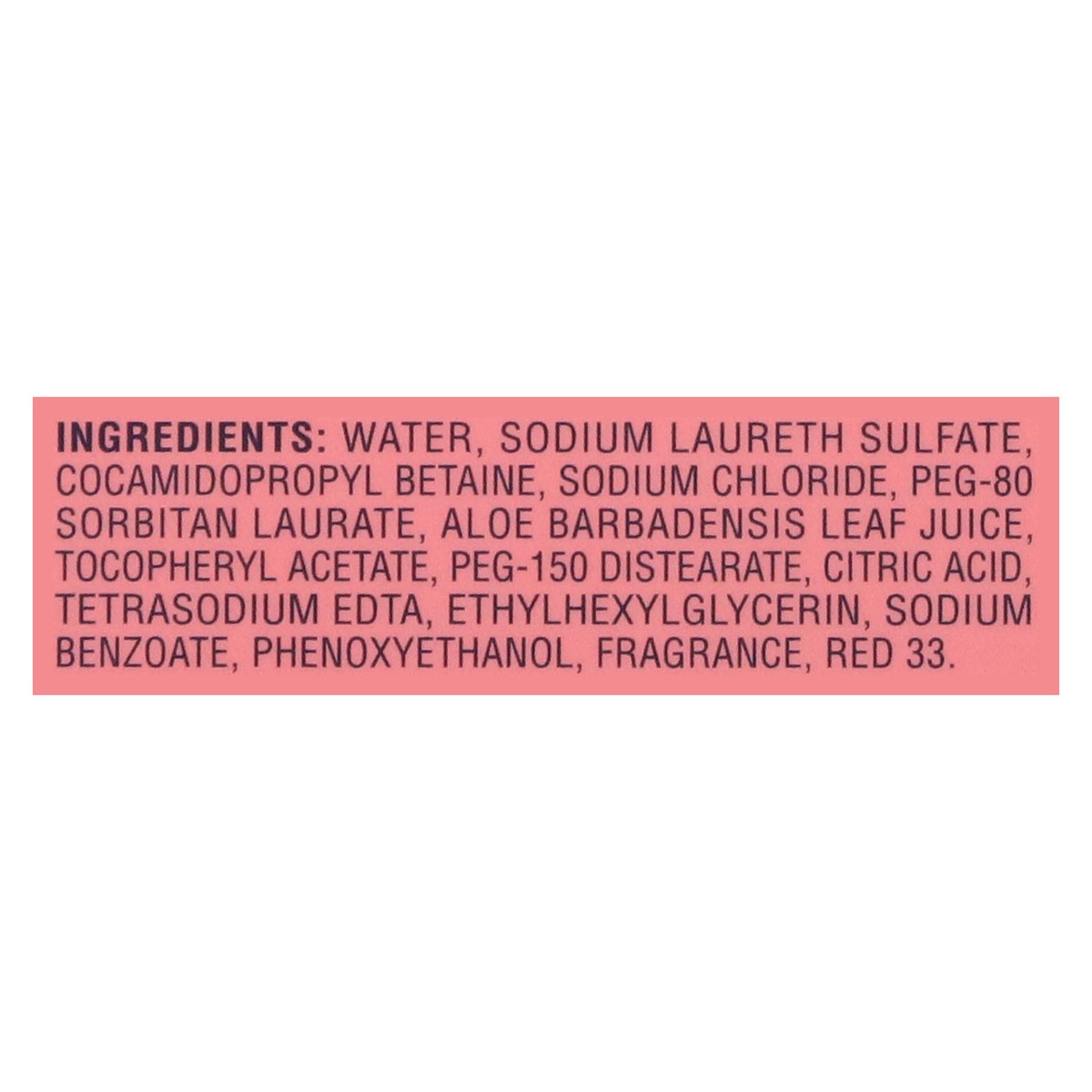 Water, Sodium Laureth Sulfate, Cocamidopropyl Betaine, Sodium Chloride, PEG-80 Sorbitan Laurate, Aloe Barbadensis Leaf Juice, Tocopheryl Acetate, PEG-150 Distearate, Citric Acid, Tetrasodium EDTA, Eth…