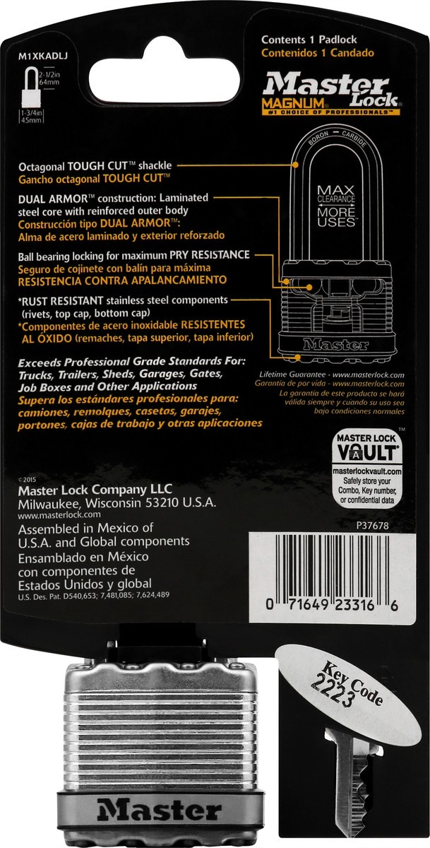 Master Lock 1-3/4in (44mm) Wide Magnum Laminated Steel Padlock with 2-1/2in (64mm) Shackle