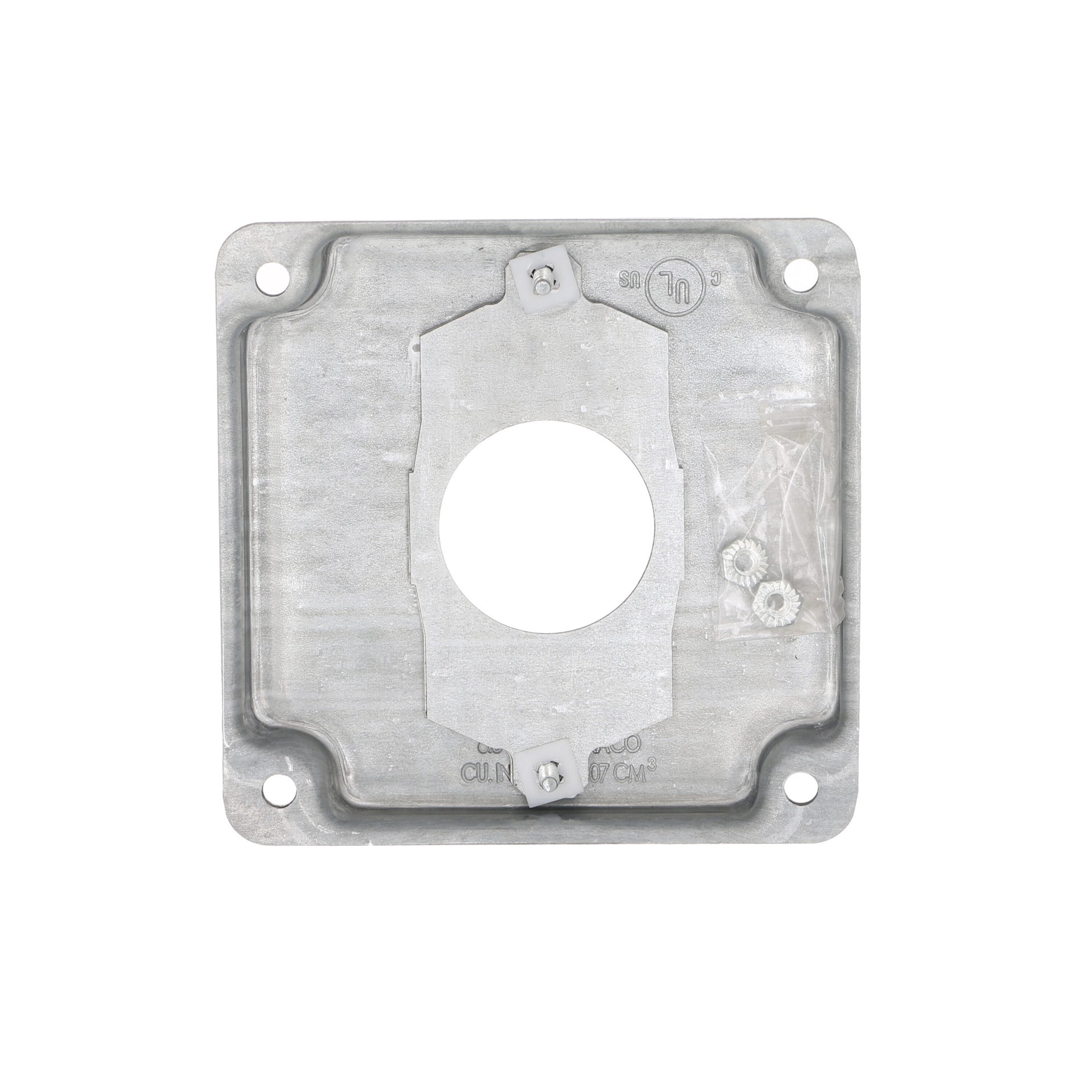 Used in surface mount applications. 3-in-1 Universal Adapter for 1 round device. Raised 1/2 in with crushed corners. cULus Listed.