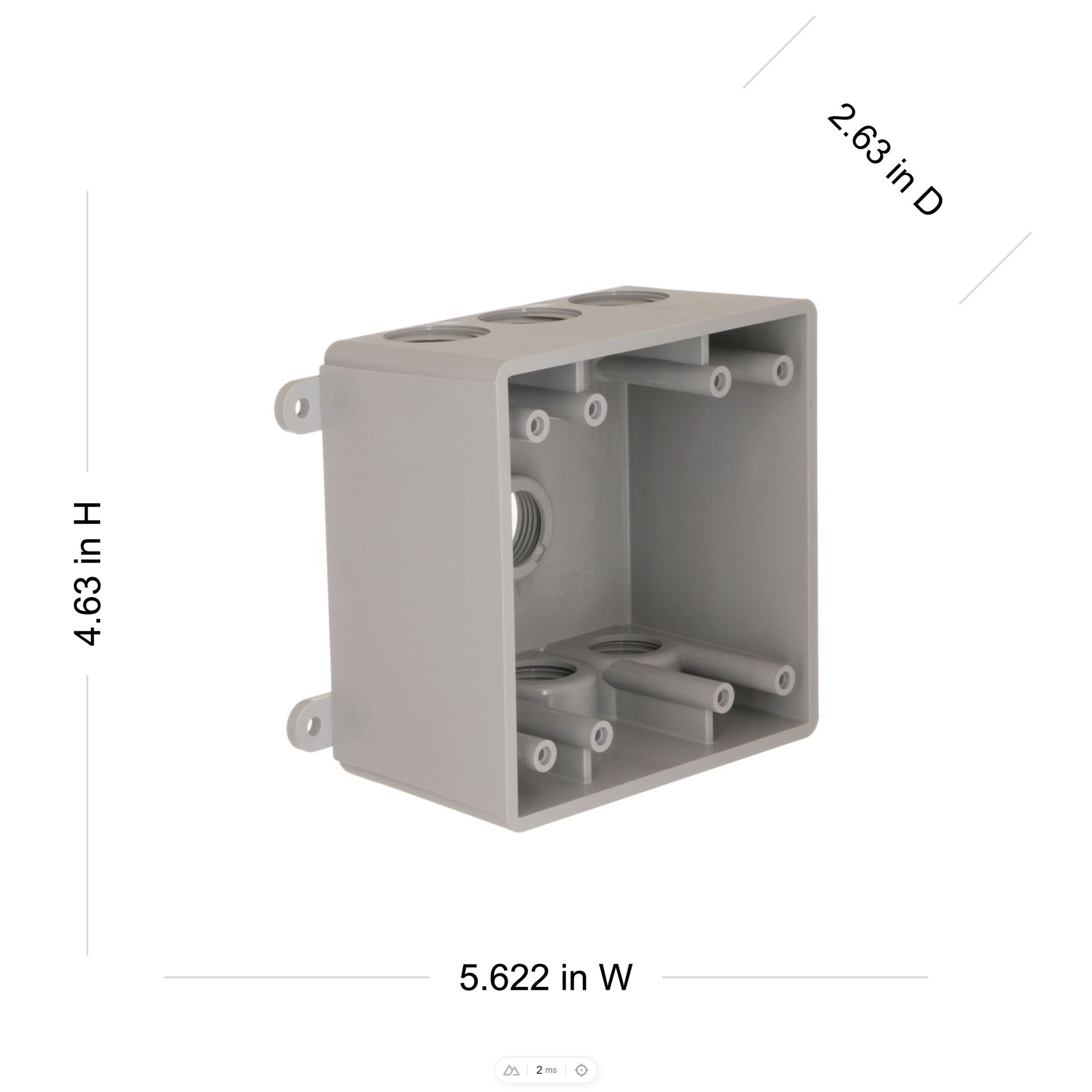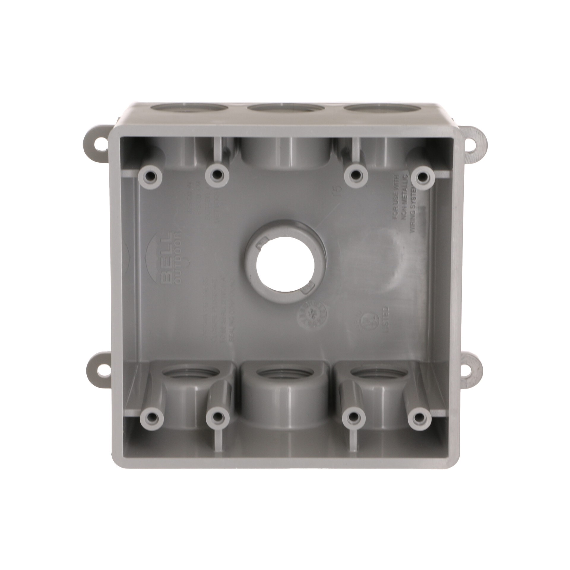 Durable high-impact PVC construction. Seven outlets that fit either 1/2 in or 3/4 conduit. 2-5/8 in deep. 33.5 cu in capacity. Includes 3/4 in closure plugs and reducer bushings. NEMA 3R rated. cULus …