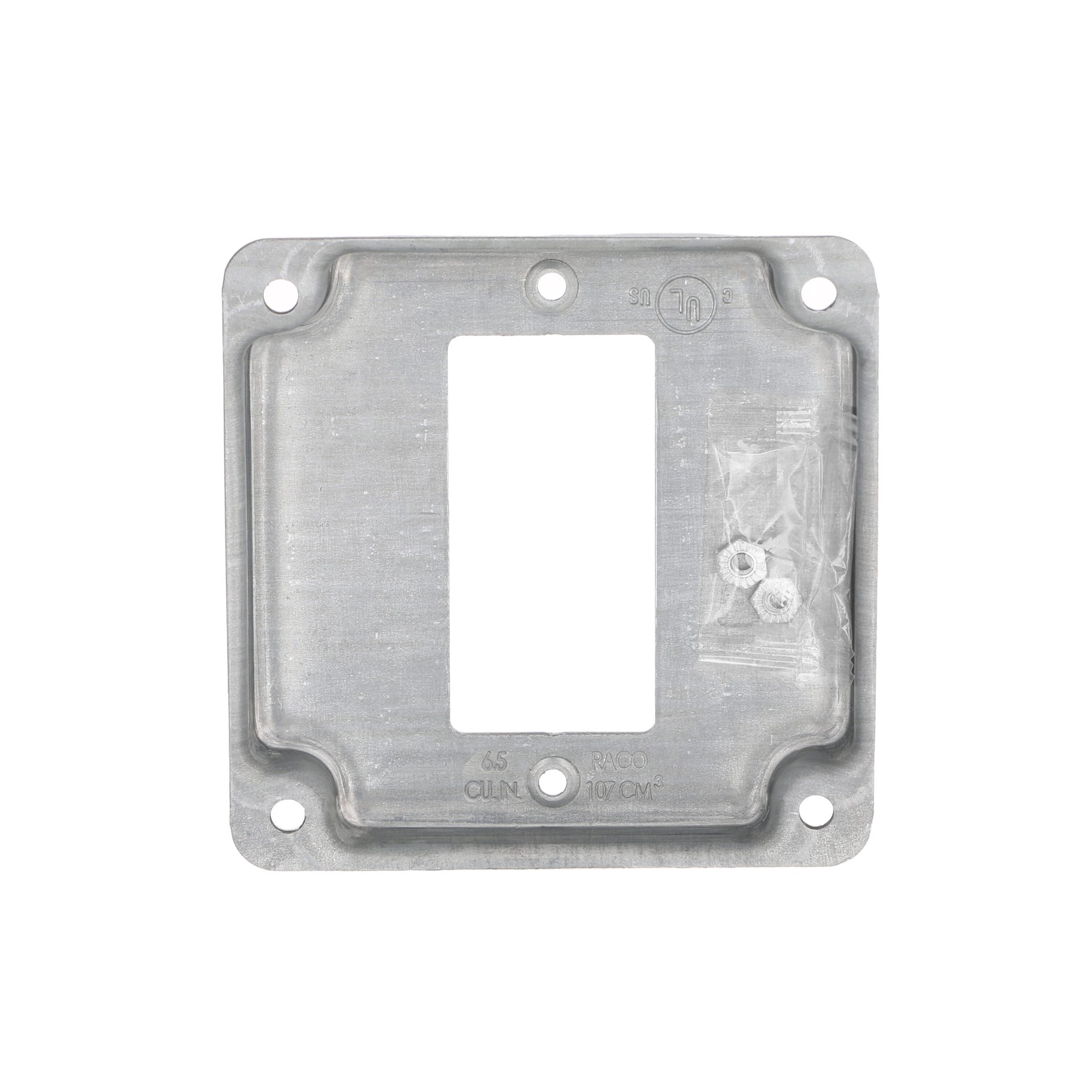 Used in surface mount applications. Mounts 1 GFCI. Raised 1/2 in with crushed corners. cULus Listed.