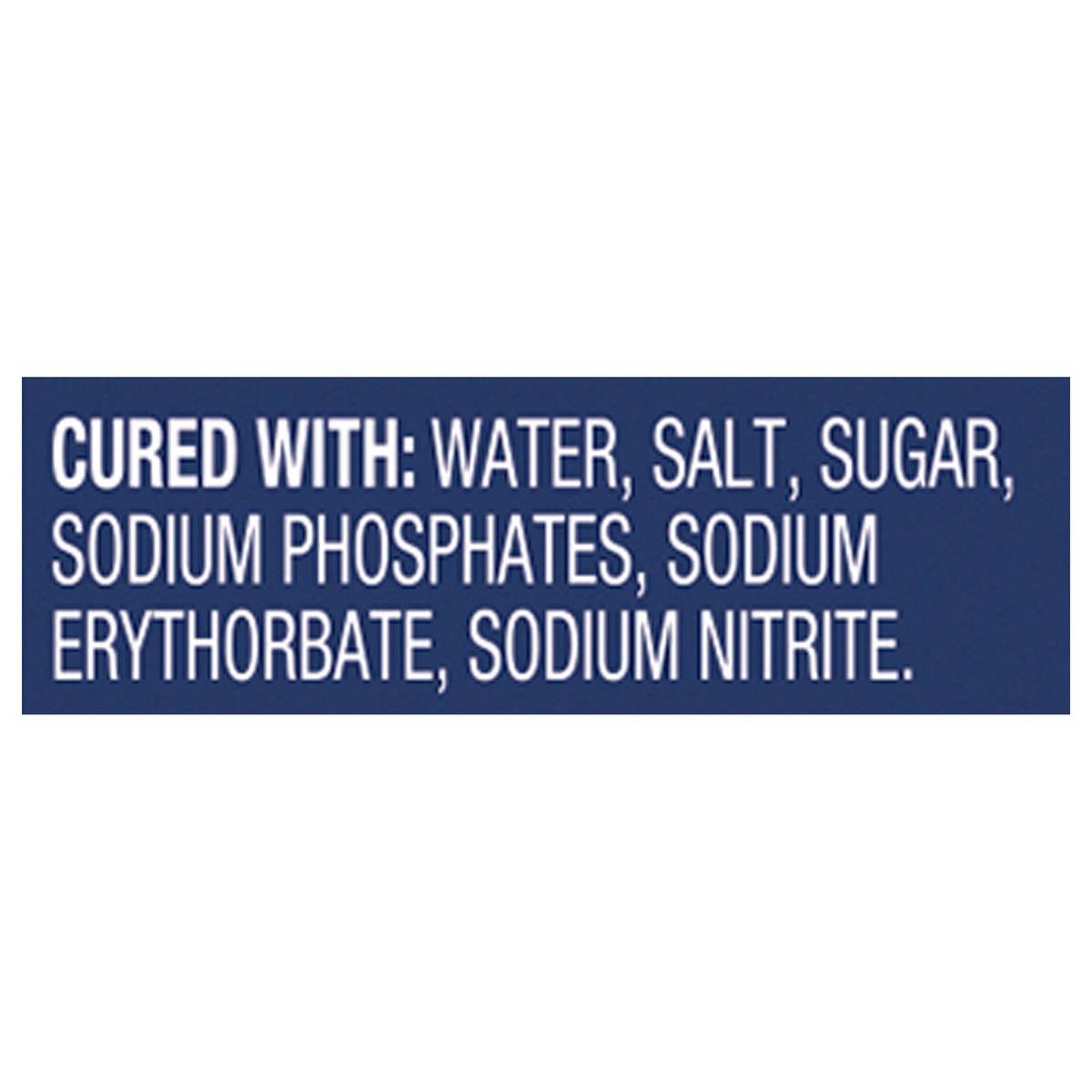 Cured With: Water, Salt, Sugar, Sodium Phosphates, Sodium Erythorbate, Sodium Nitrite.