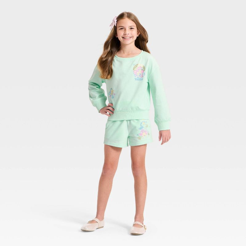 Disney Princess Girls' Disney Little Mermaid and Flounder French Terry Fleece Shorts - Green XS
