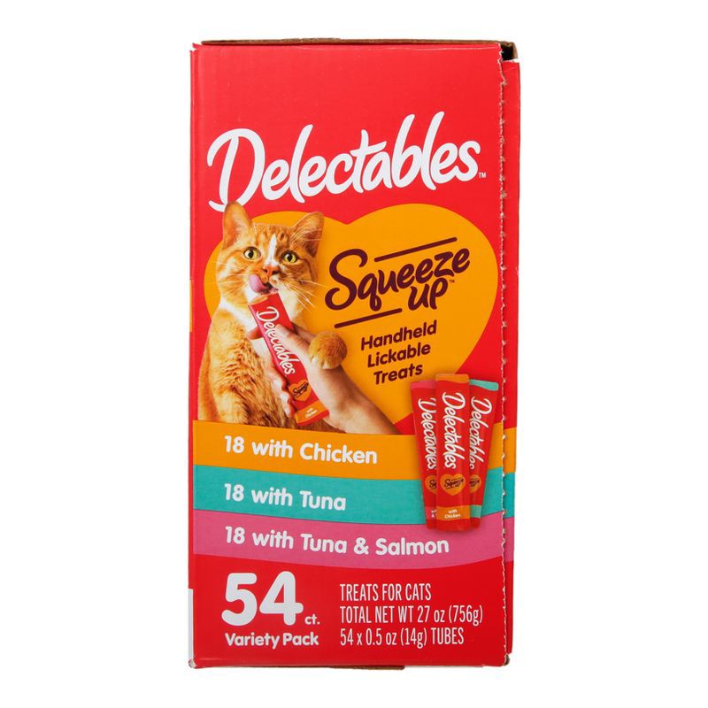 Delectables Squeeze Up Variety Pack with Tuna, Salmon & Chicken Flavor Cat Treat - 27oz/54ct