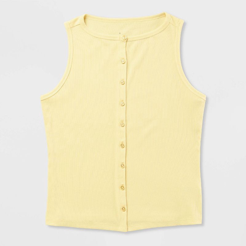 Women's Slim Fit Modern Ribbed Button-Front Tank Top - A New Day™ Yellow S