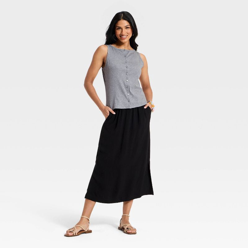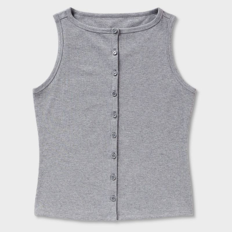 Women's Slim Fit Modern Ribbed Button-Front Tank Top - A New Day™ Gray M