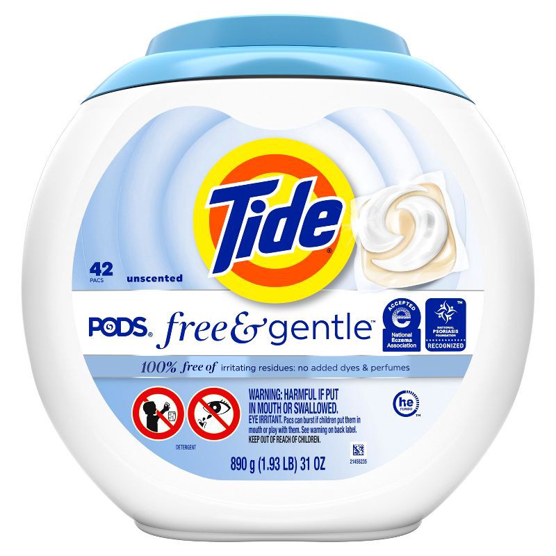 - PACKAGE CONTENTS: Includes one 42 ct tub of Tide PODS Free & Gentle laundry detergent