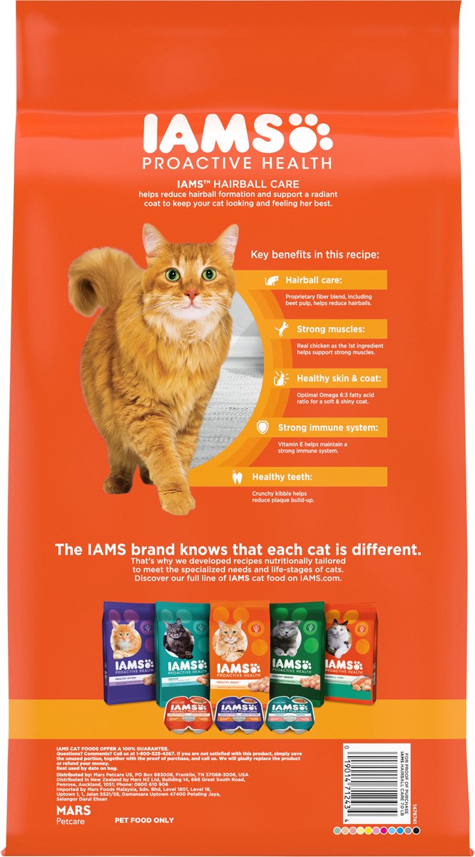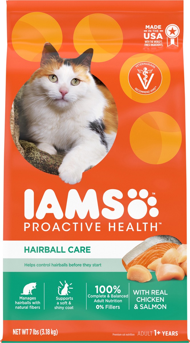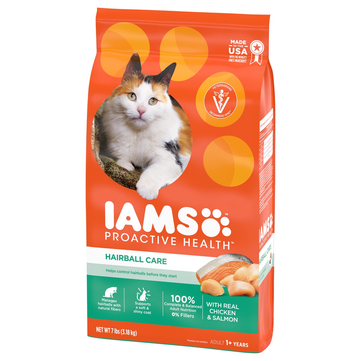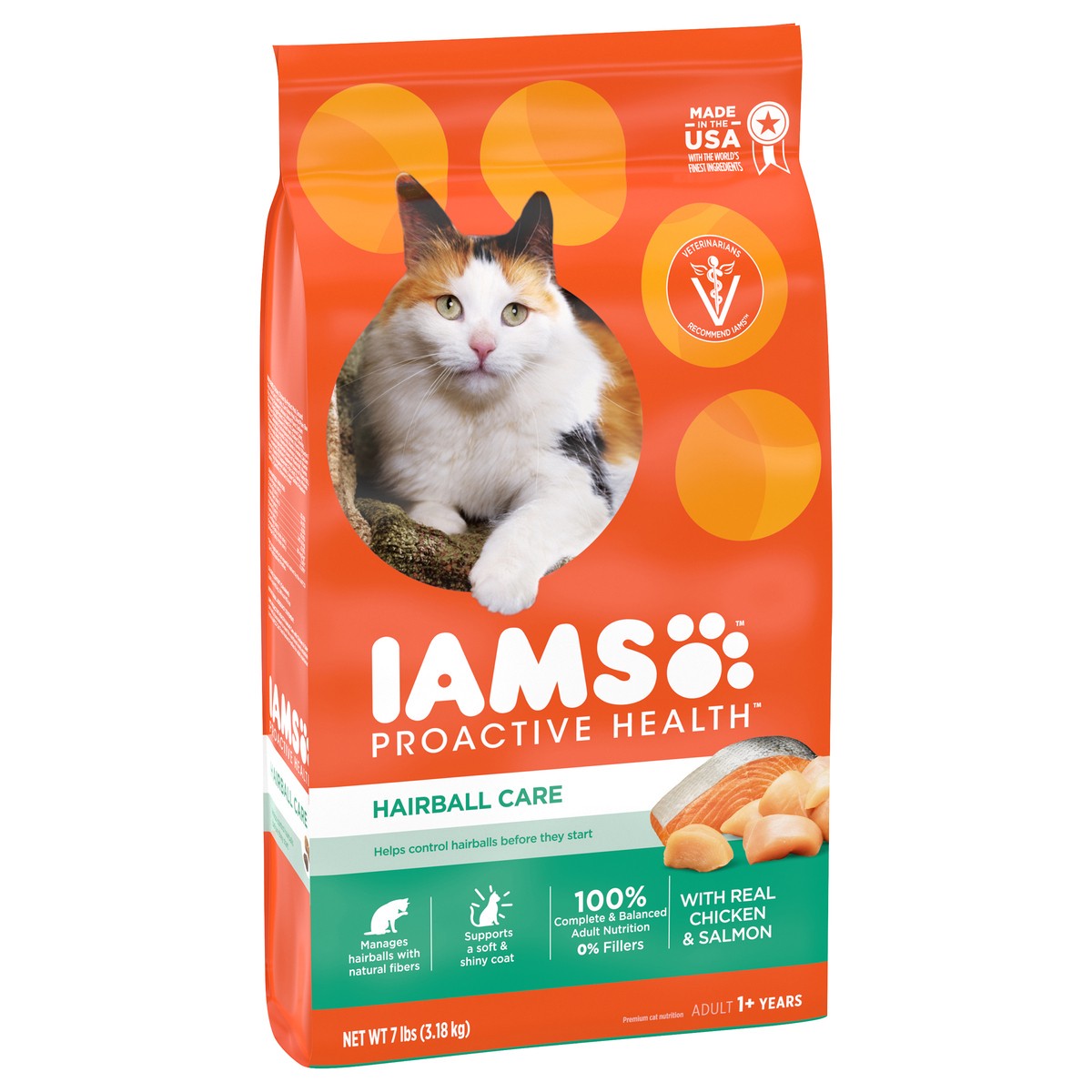 IAMS PROACTIVE HEALTH Adult Hairball Care Dry Cat Food with Chicken and Salmon Cat Kibble, 7 lb. Bag