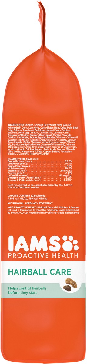 Calorie Content (Calculated): 3,506 kcal ME/kg, 399 kcal ME/cup. Nutritional Adequacy Statement: IAMS Proactive Health Hairball Care with Chicken & Salmon cat food is formulate to meet the nutritional…