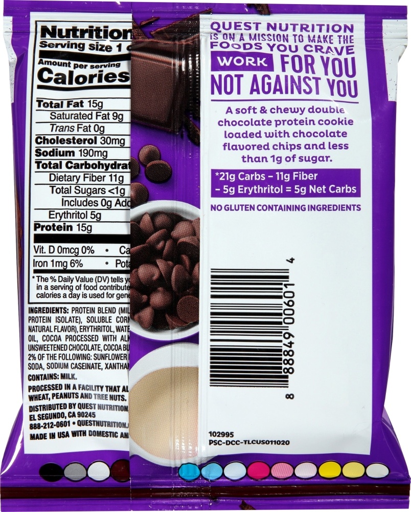 - UNWRAP COMPLETE PROTEINS: Quest Double Chocolate Chip Protein Cookies are made with complete