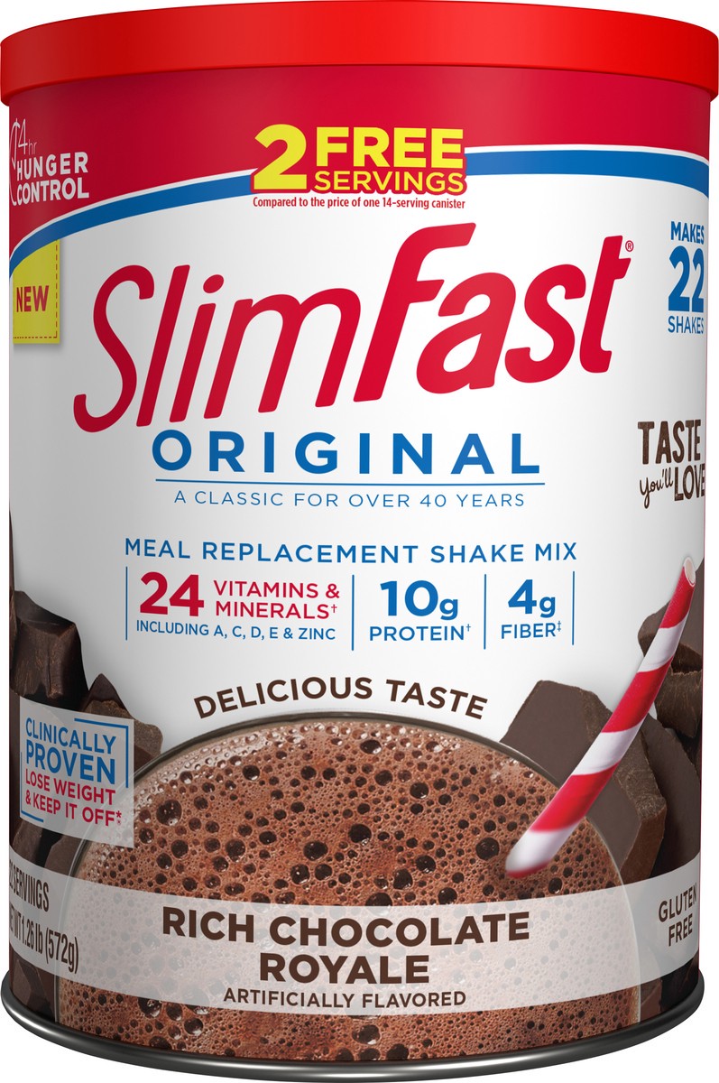 Presenting the crown jewel of weight loss shakes - SlimFast Original Rich Chocolate Royale shake mix. Providing nutritious vitamins and minerals while decreasing your waistline. Spoil your taste buds …